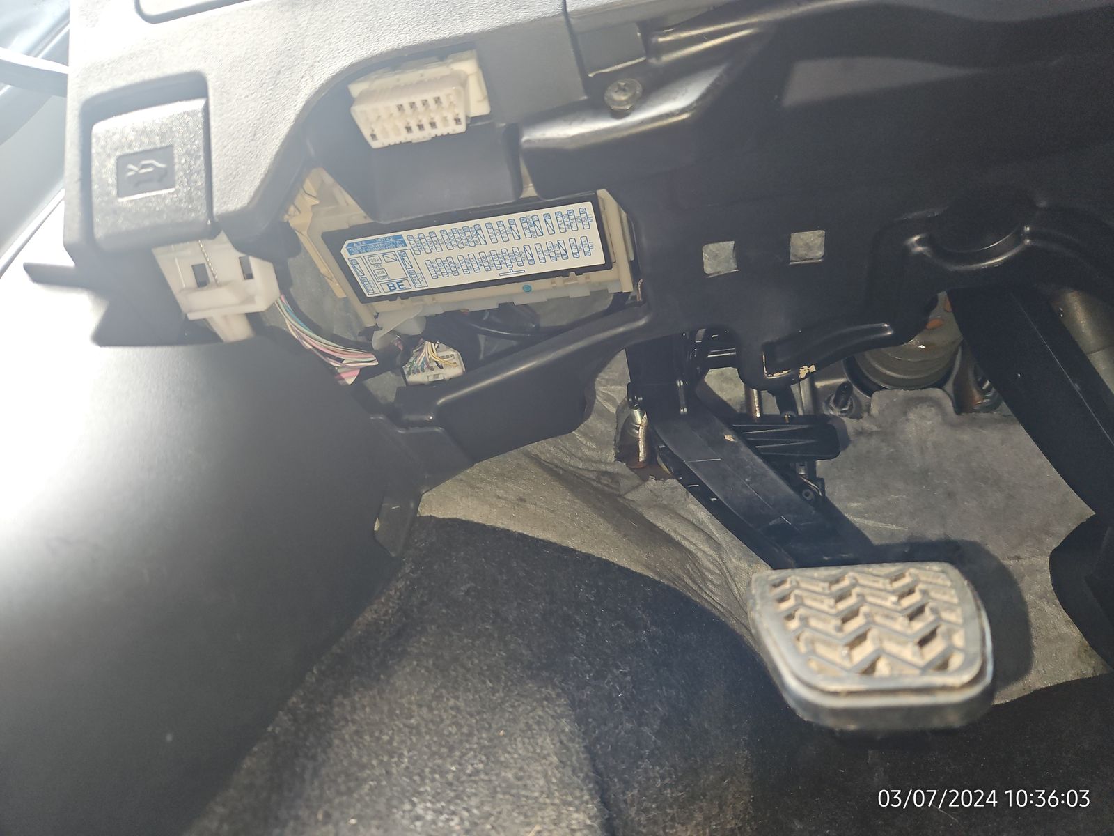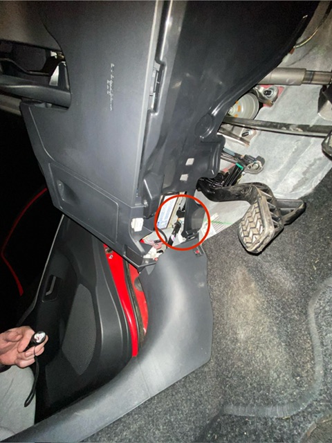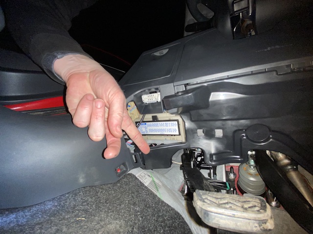 Erstens ist das markierte Teil lose und zweitens sieht das alles so offen aus - im Vergleich zur Beifahrerseite wo unten am Cockpit alles verkleidet ist.