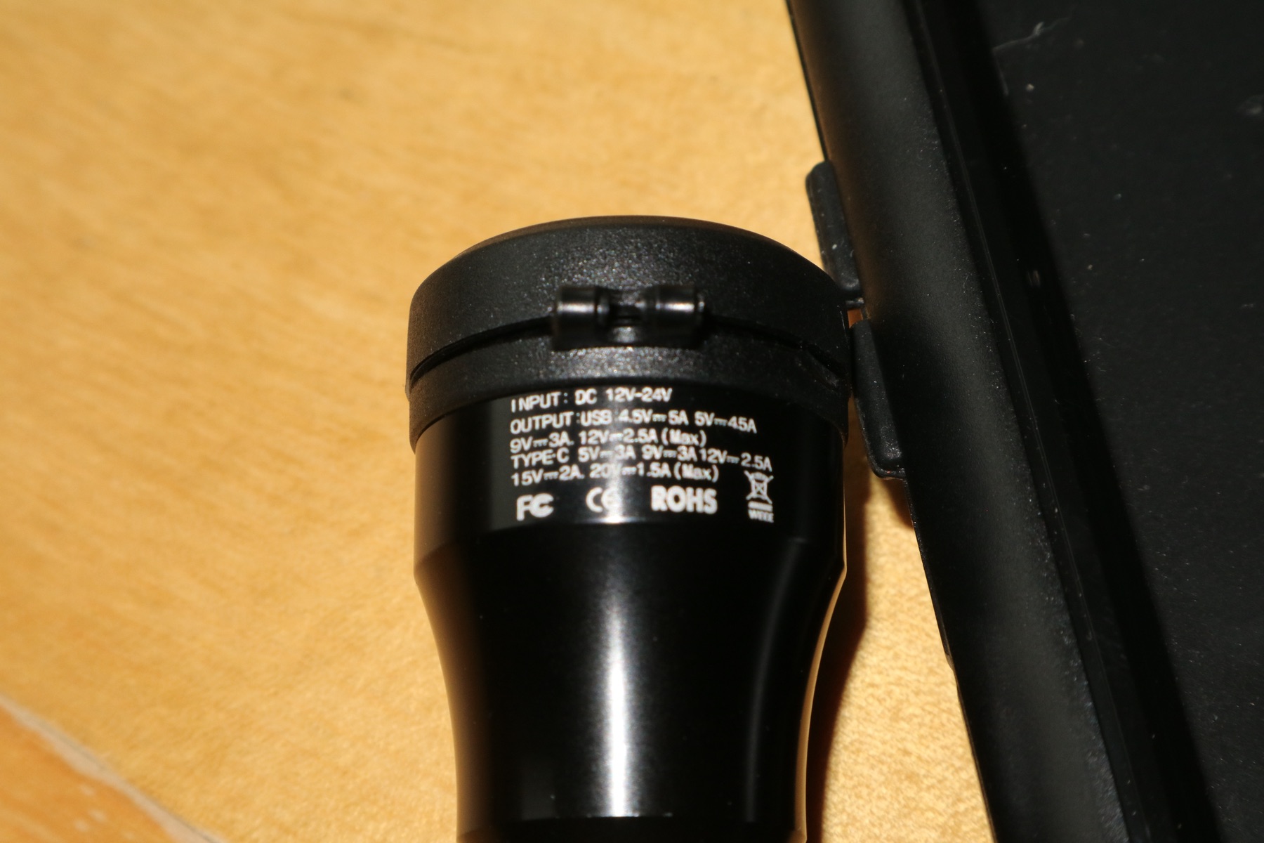Laut Werksangaben verträgt das Ding Eingangsspannungen zwischen 12 und 24 Volt und liefert bei 12 Volt auf jedem der USB-Anschlüsse 2,5 a, das sollte auch für große Smartphones und Tablets reichen.