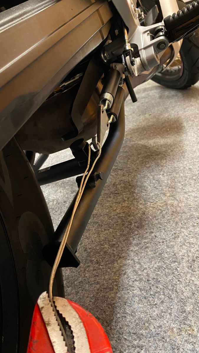 #6 Alles anzeigenBei AltRider habe ich mir eine Tieferlegung und dazu einen neuen Seitenständer geleistet. Dieser Seitenständer kommt mit einem Federspannergriffstück - damit geht das Spannen sehr einfach.