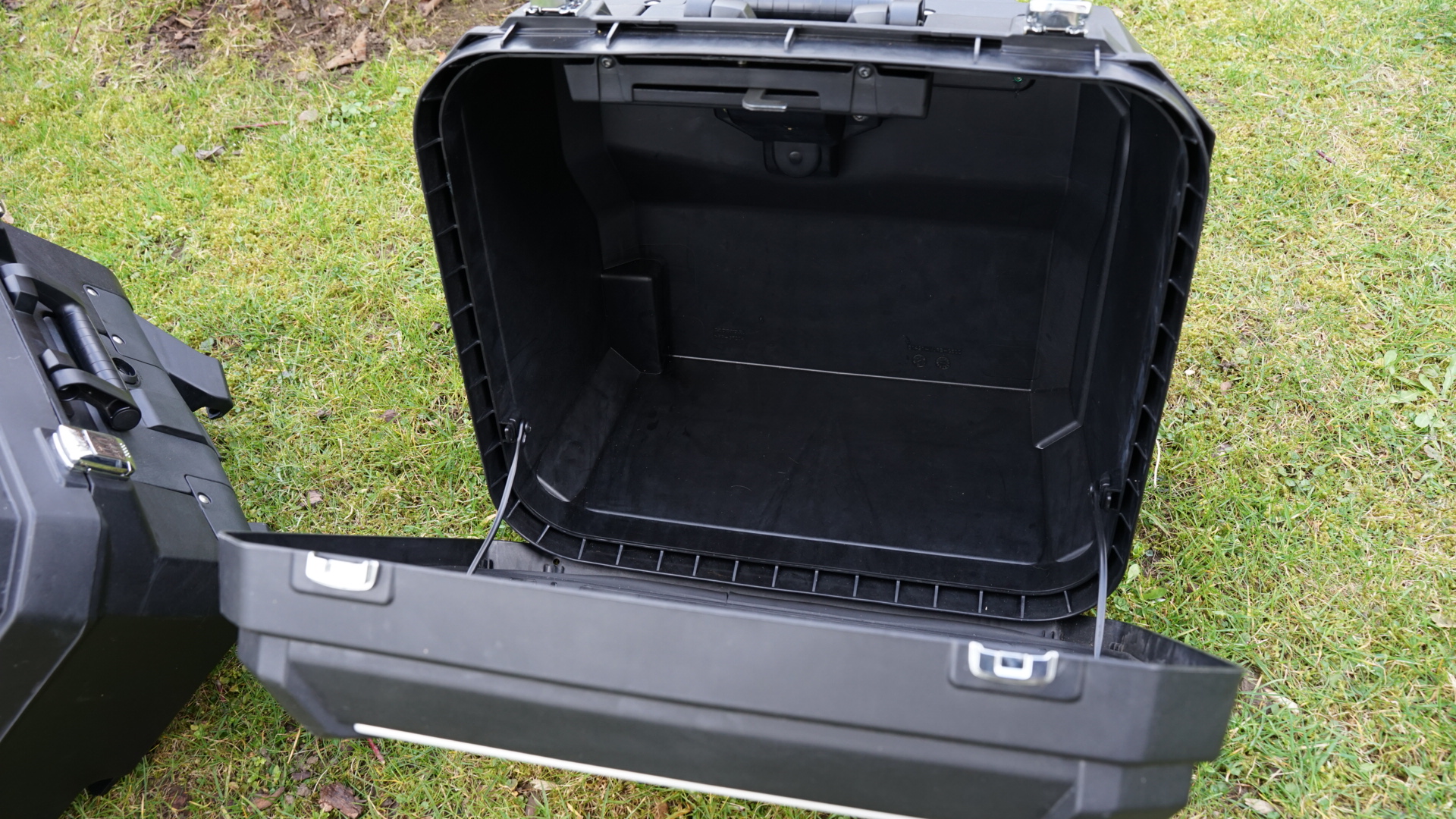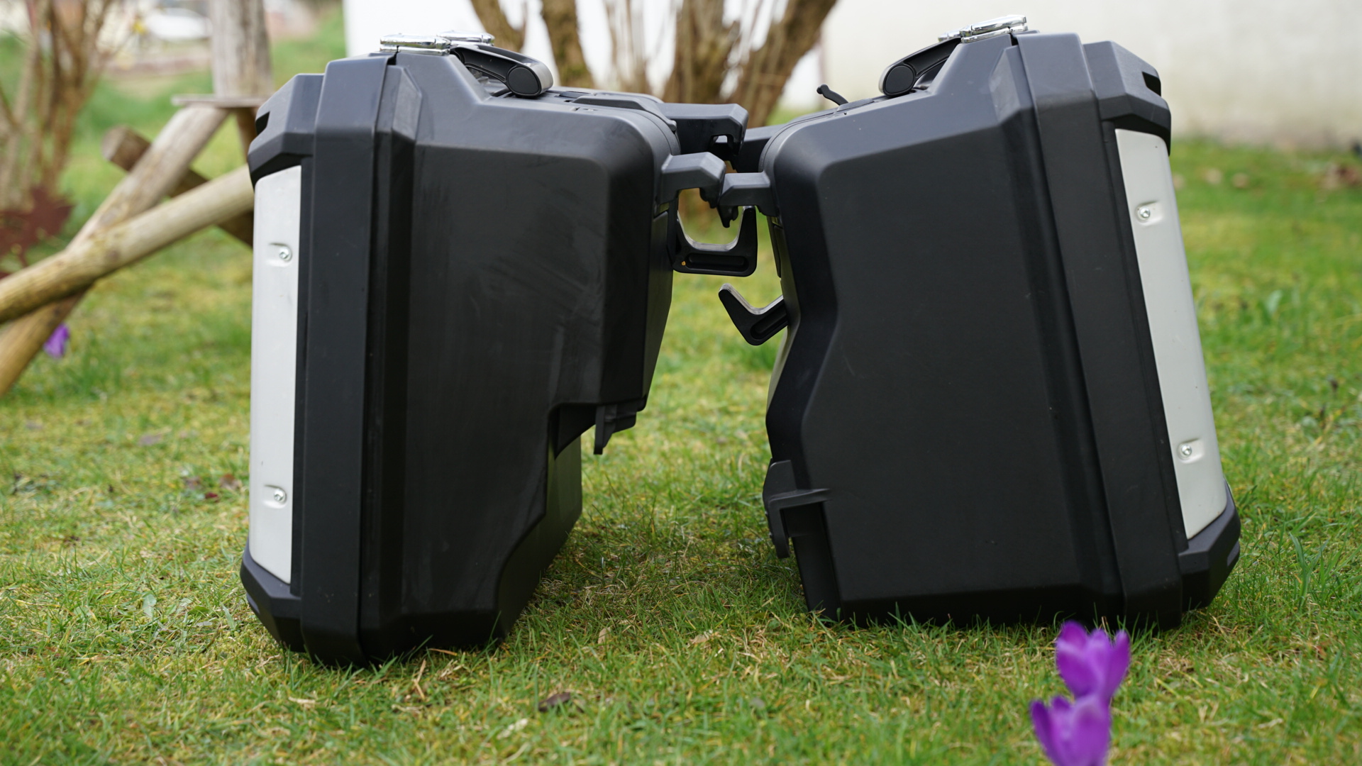 Der Seitenkoffersatz wurde Ende 2020 angeschafft und lediglich 5x für Tagestouren benutzt. Er befindet sich deshalb in einem neuwertigen Zustand, keine Kratzer, Dellen oder sonstige Beschädigungen. Die Koffer bieten insgesamt ein solides Stauvolumen von 70 Litern und bauen durch die integrierten Trägerpunkte am Motorrad relativ schmal auf. Ein Integralhelm findet darin bequem seinen Platz.