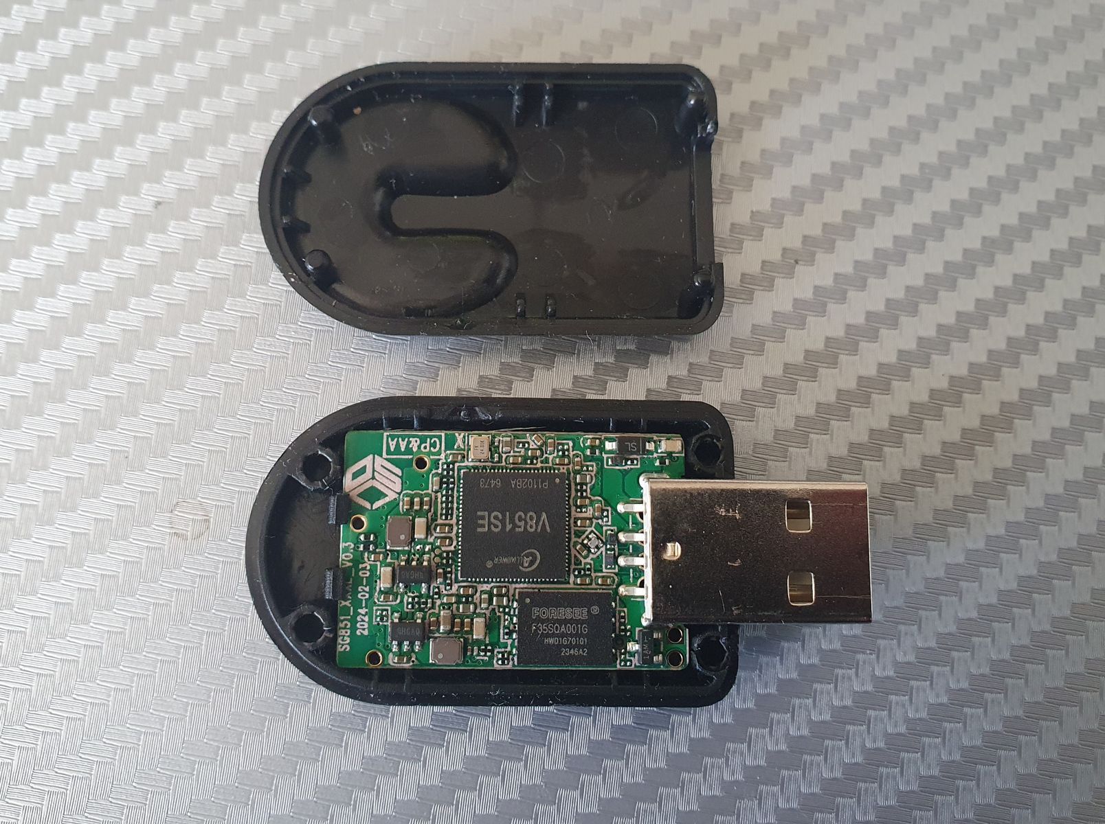 Das Xuda Dongle verwendet die baugleiche Platine (hier tatsächlich die gleiche, weil ich die andere umgebaut habe) und ist wesentlich freundlicher zum Öffnen. Bei dem werden die zwei Plastikschalen mit 4 runden Stiften/Löcher zusammengehalten und man muss keine plastikteile biegen um das Gehäuse zu öffnen - nur einfach auseinanderziehen.