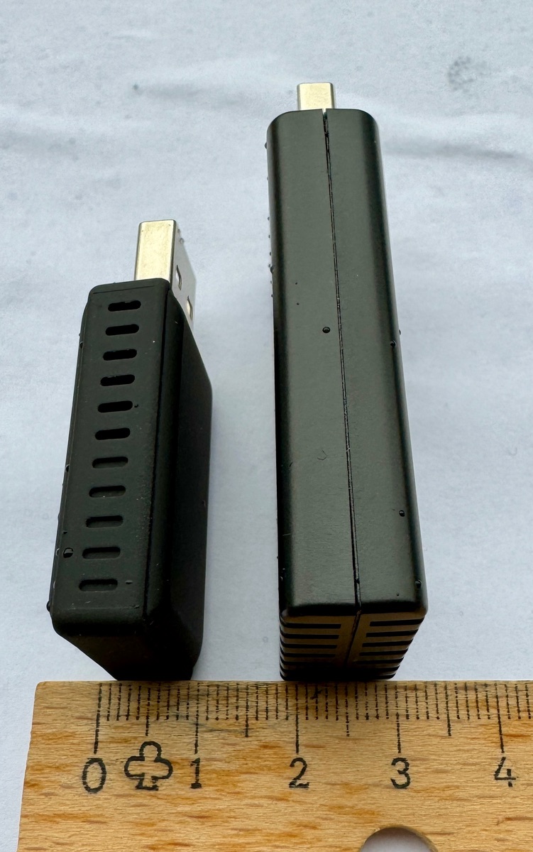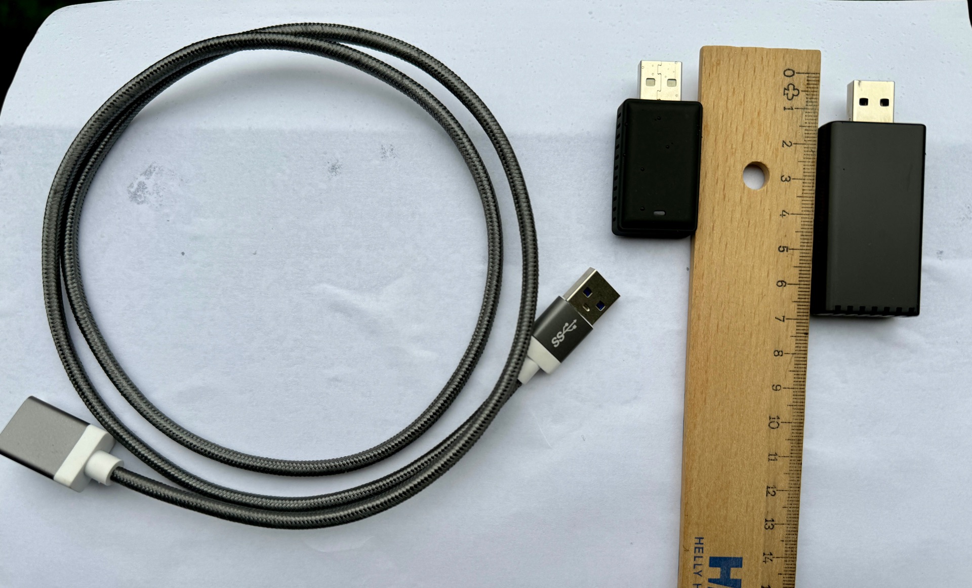 Auf den angehängten Fotos sieht man den Größenunterschied zwischen einem Amazon Dongle (größeres Gehäuse) und einem China Dongle. Außerdem ist das Kabel zu sehen, das ich zur Erstinstallation benutze. Bevor ich die Elektronik aus dem Gehäuse herausnehme, will ich erst einmal wissen, ob der Dongle prinzipiell mit der ATAS funktioniert. Beide Dongles funktionieren. ich frage mich, warum der Amazon Dongle ein so viel größeres Gehäuse besitzt als der China Dongle. Ob da eine andere/größere Elektronik drin steckt als im China Dongle? Ich hätte erwartet, dass die Elektronik in den Dongles mehr oder weniger die gleiche ist.