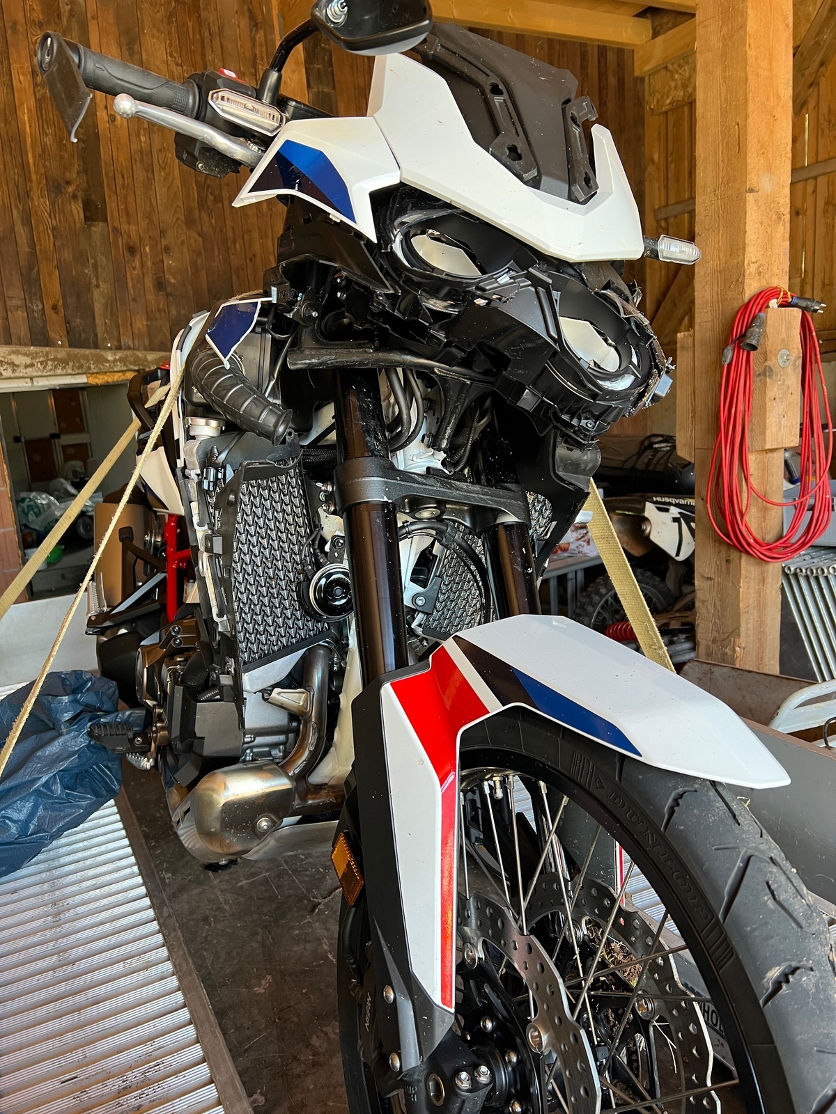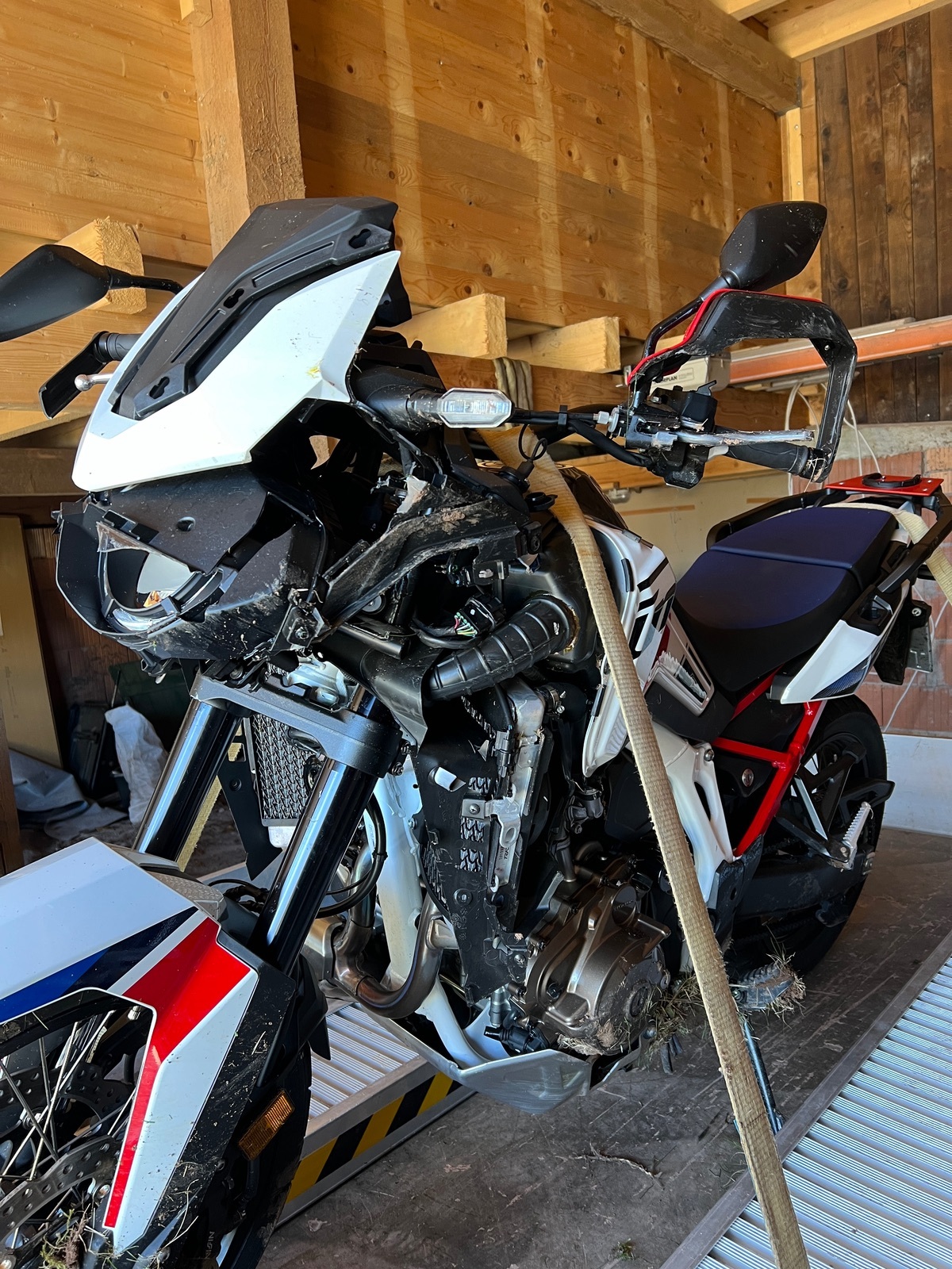 Glück im Unglück, habe ich nur Prellungen, aber die AT ist schrott (9 Monate alt 10tkm), gabel verzogen eigentlich die Front komplett am Arsch.