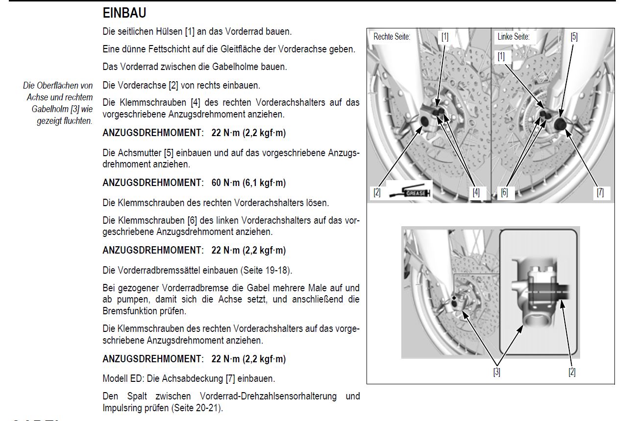 Beim Einbau drehe ich die Achsmutter mit der Ratsche ganz leicht an und gebe mit Hammer und Hartholz einen kleinen Schlag auf jeden Kettenspanner (Vierkant), dann sitzt die Achse an der Einstellschraube.