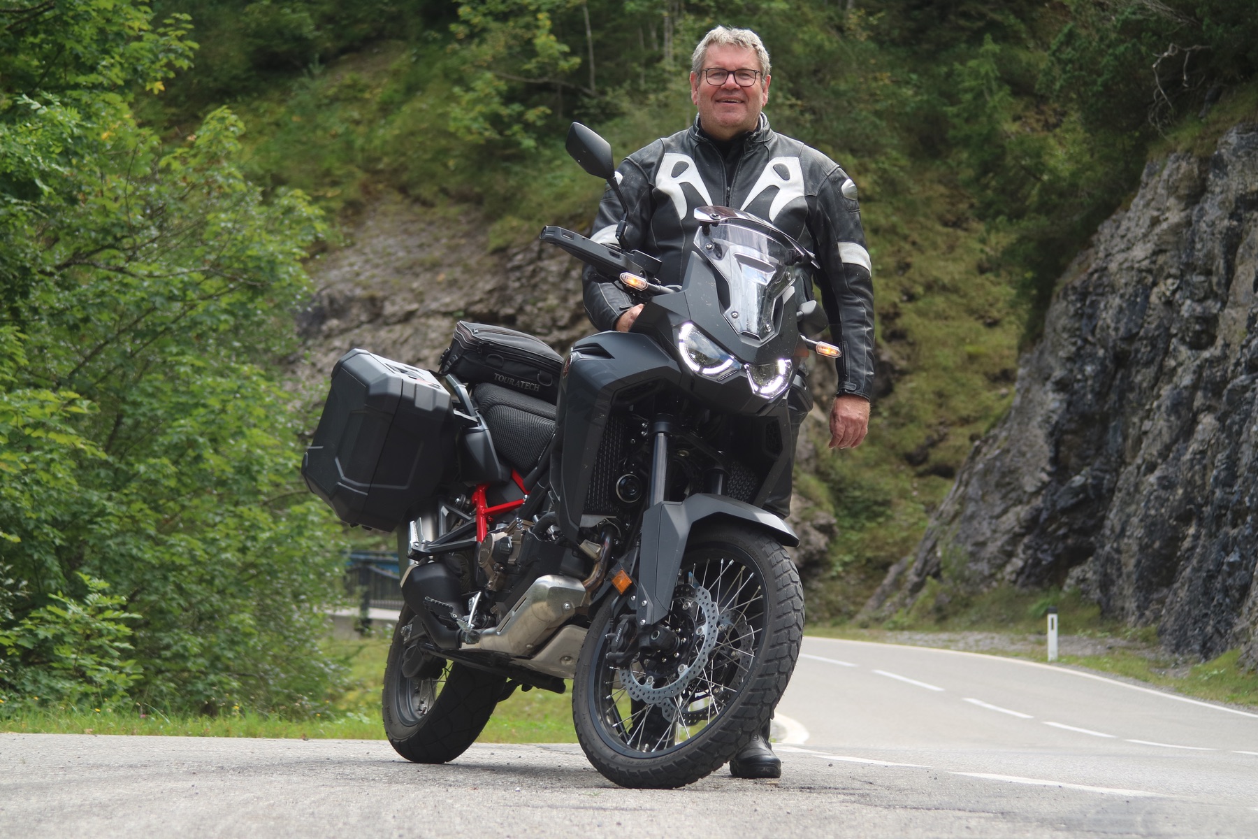 Nach dieser Vorrede muss ich sagen, dass ich am liebsten in meiner guten alten Lederkombi fahre, wenn das Temperaturfenster stimmt und es trocken bleibt. Da flattert nix, da fühle ich mich gut eingepackt und gut aufgehoben.