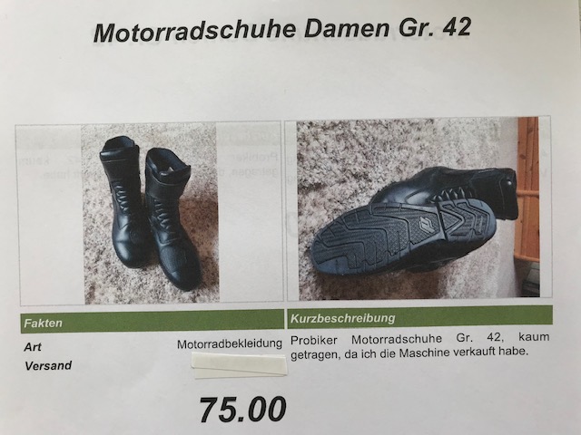 Handschuhe der Firma Held Gore Tex Größe L Unisex 45€ Motorradstiefel der Firma Probiker Größe 42 kaum getragen, Alle Produkte sehr Guter Zustand.