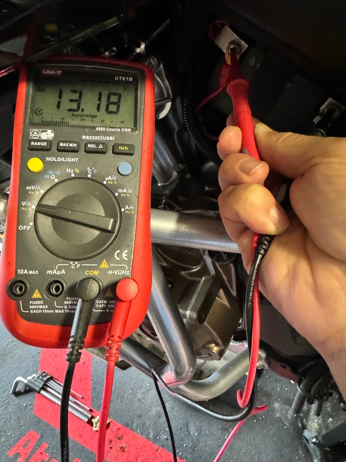 14,11V mit steigender Tendenz, die Batterie wird also geladen.