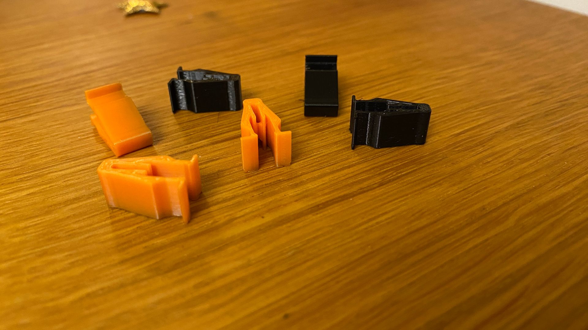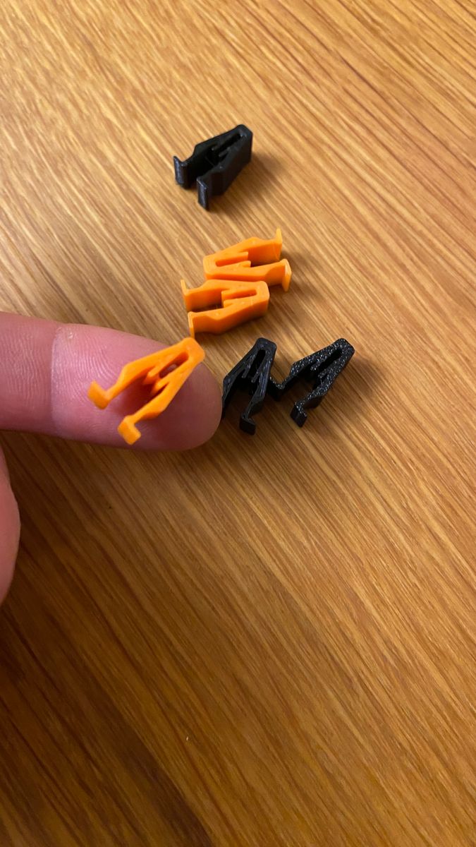 Nachdem der erste Druck von Thingsuniverse, schwarz gespritzt zum Vergleich, noch ganz wenig Spiel auf der LK-Mutter hatte und das Logo auch nicht so toll war, passen die eigenen Konstruktionen nun richtig satt. Einfach so im vorbeigehen wegnehmen geht nicht. Die Logos stehen auch nicht vor, sondern sind um 0,4mm versenkt.
