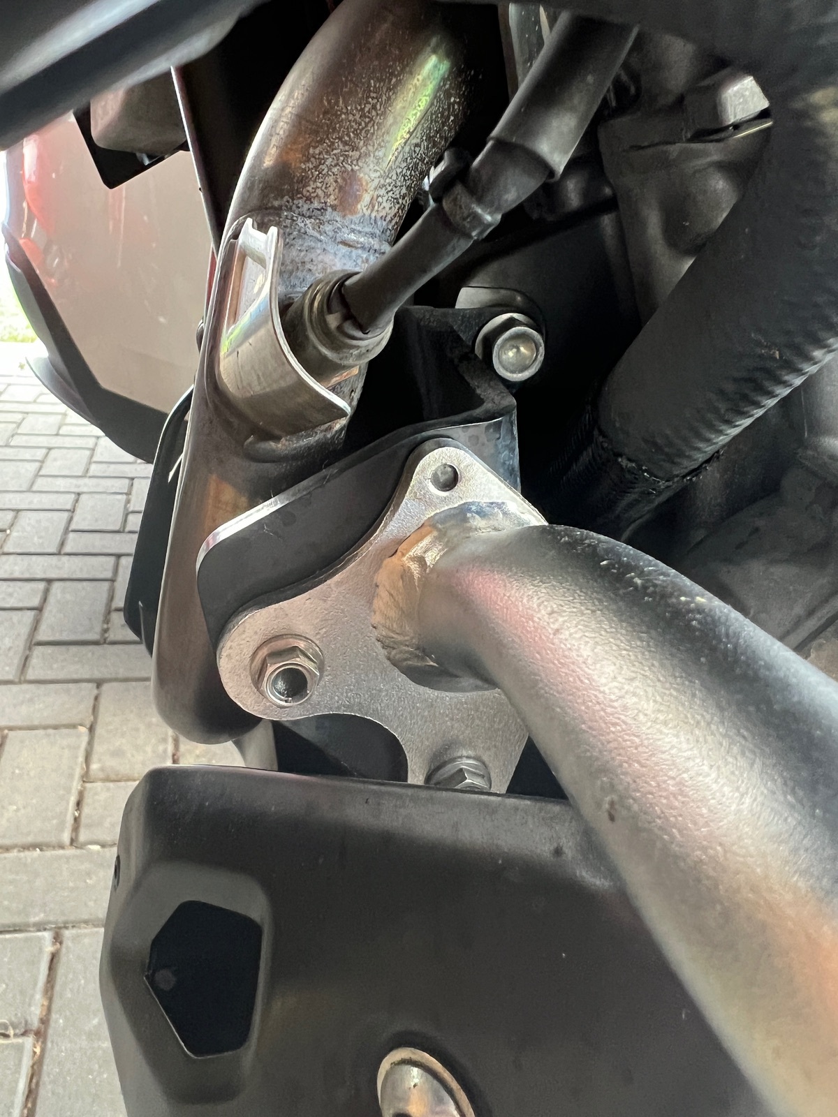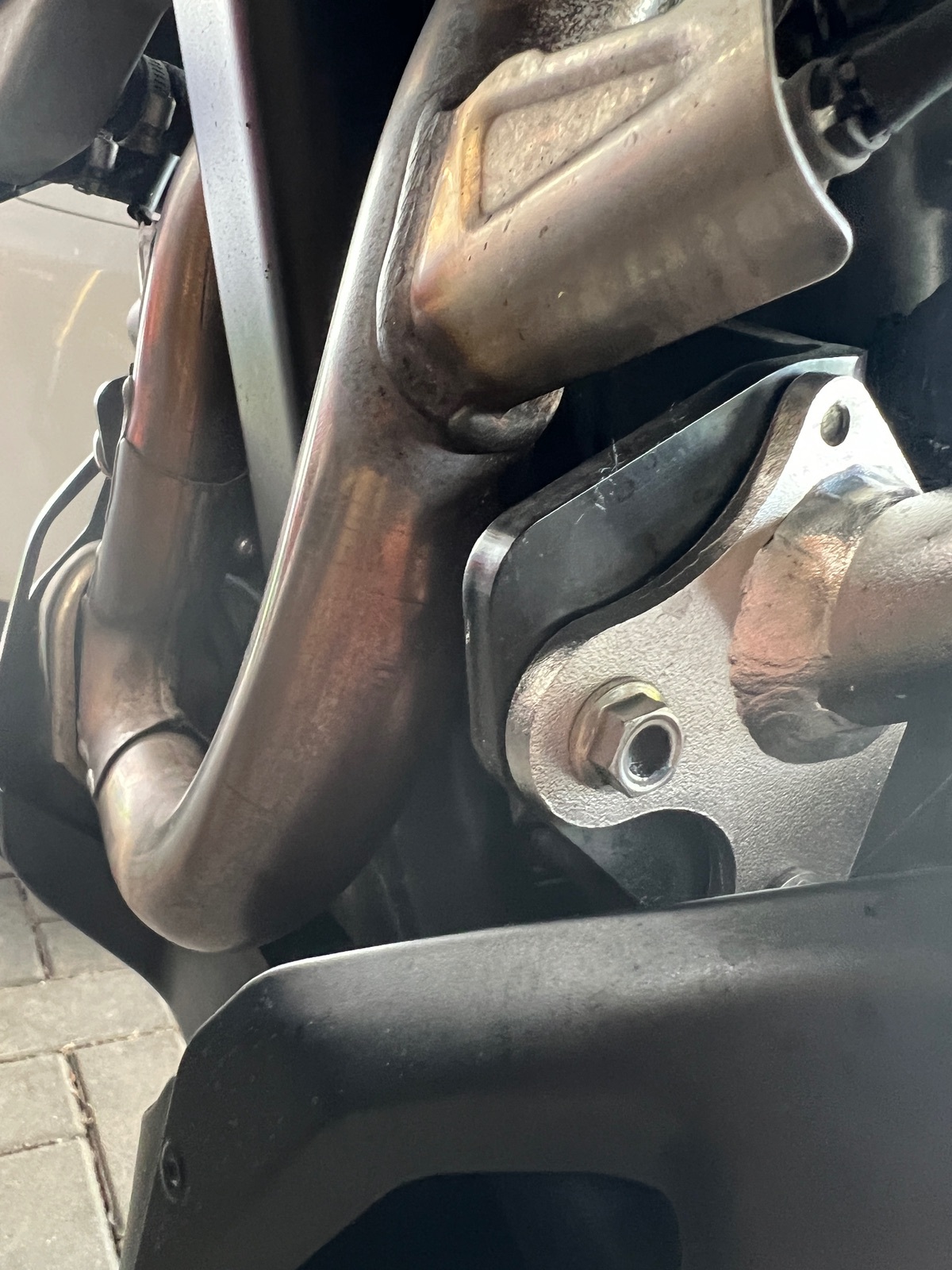 Die erste Frage, benötige ich dafür doch noch das Montageset? Das mit den schwarzen Metallwinkeln, Schrauben und Krümmerdichtungen? Sie kommen doch an die Ösen der Motorschutzbügel ohne noch mal die Krümmer zu lösen?