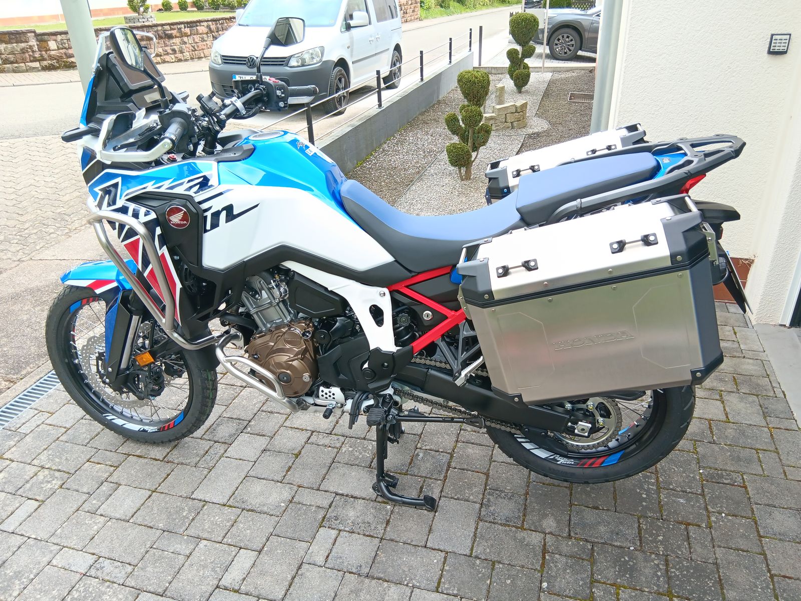 Die Africa Twin ist reichlich ausgestattet und in top Zustand.
