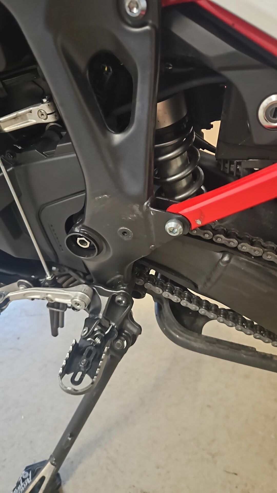 Mir ist vorgestern Abend nach etwas über 18.000 km beim Waschen aufgefallen, dass der rote Rahmen Schleifspuren hat. Kam mir komisch vor.