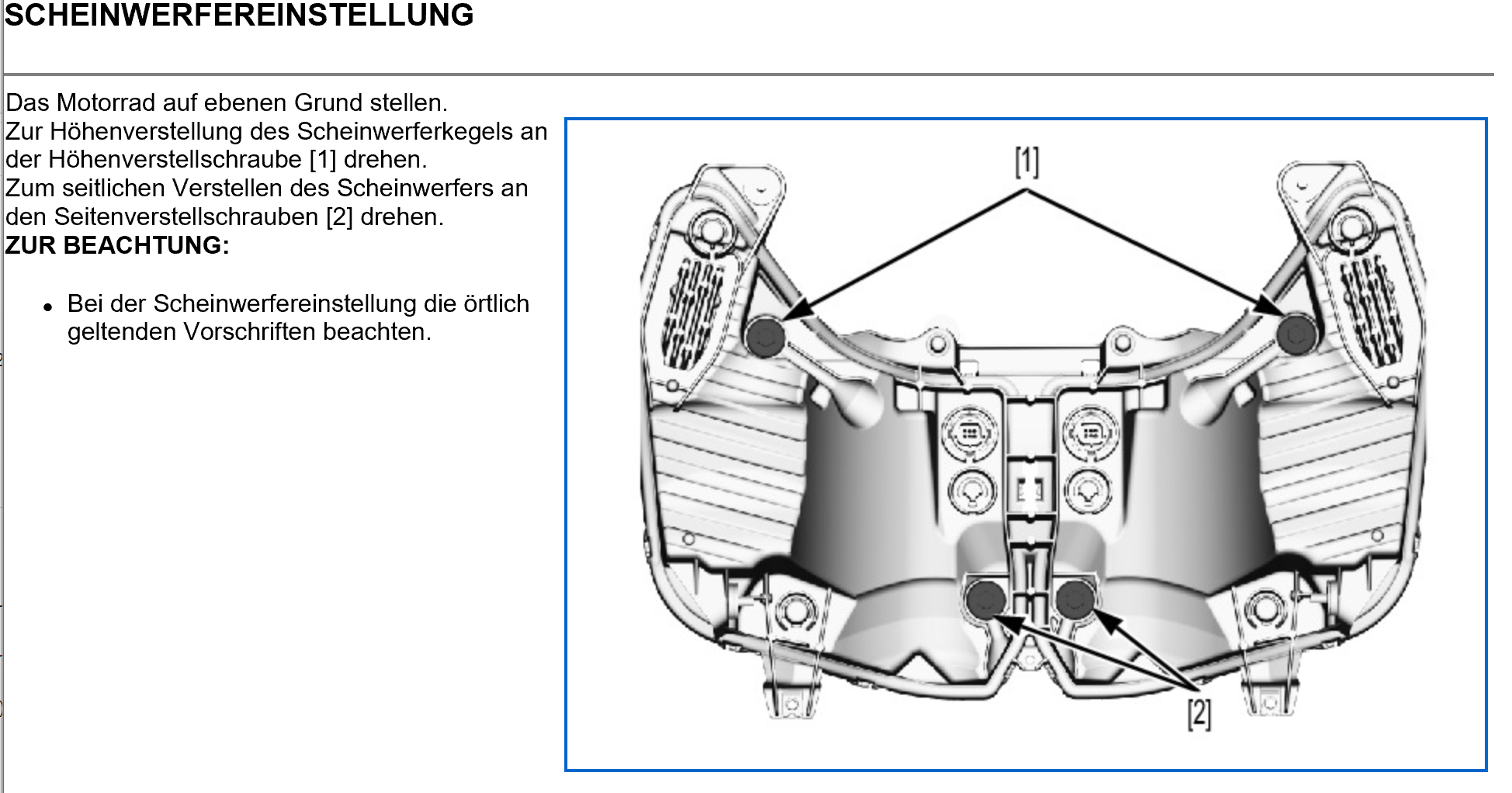 Umstellung für Sozius sollte wenn möglich per Federbasis am Federbein erfolgen, nicht am Scheinwerfer. -