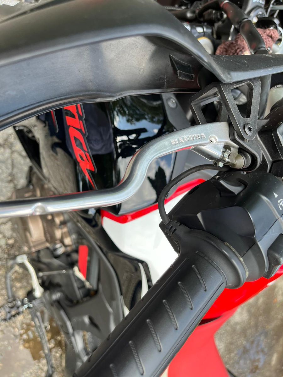 Elektrostarter, Katalysator, ABS, Healtech Quickshifter QSE Sensor,SW-Motech Hauptständer, Griffheizung Daytona, Zieger IBEX Alurack, MyTech Abdeckung Bremsflüssigkeitsbehälter, MyTech Schutz für Kupplungszug, Mytech Schutz Steuergerät, Ctek Ladeport für Batterie, HP Corse Edelstahl Schalldämpfer, Hydraulischer Kupplungszug von Magura, Rally Umbau von AfricaQueens, Fender Kit und längere Bremsleitungen (AfricaQueens)