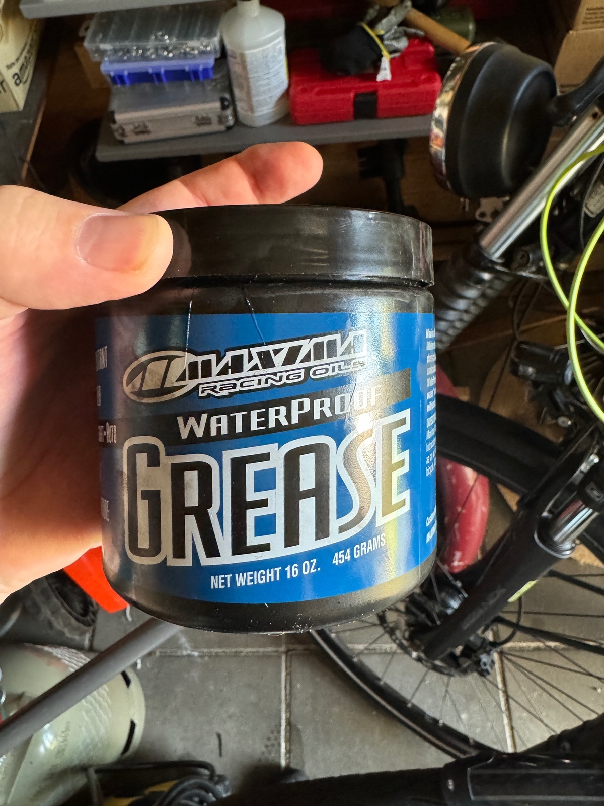 Ich habe beim letzten Reifenwechsel die Gelegenheit genutzt und in den Raum zwischen den Dichtringen und den Lagern ordentlich zu fetten. Dafür habe ich dieses Fett genutzt: