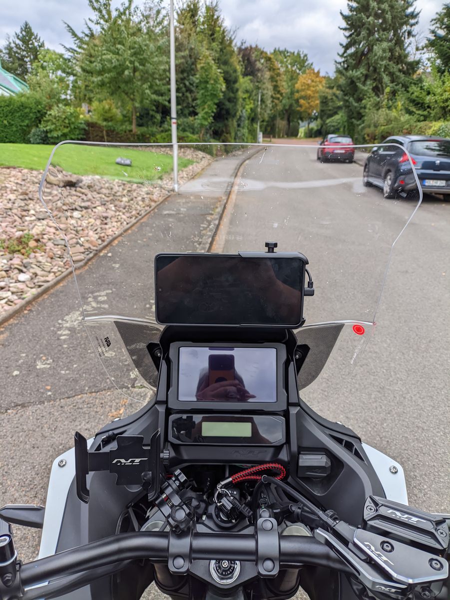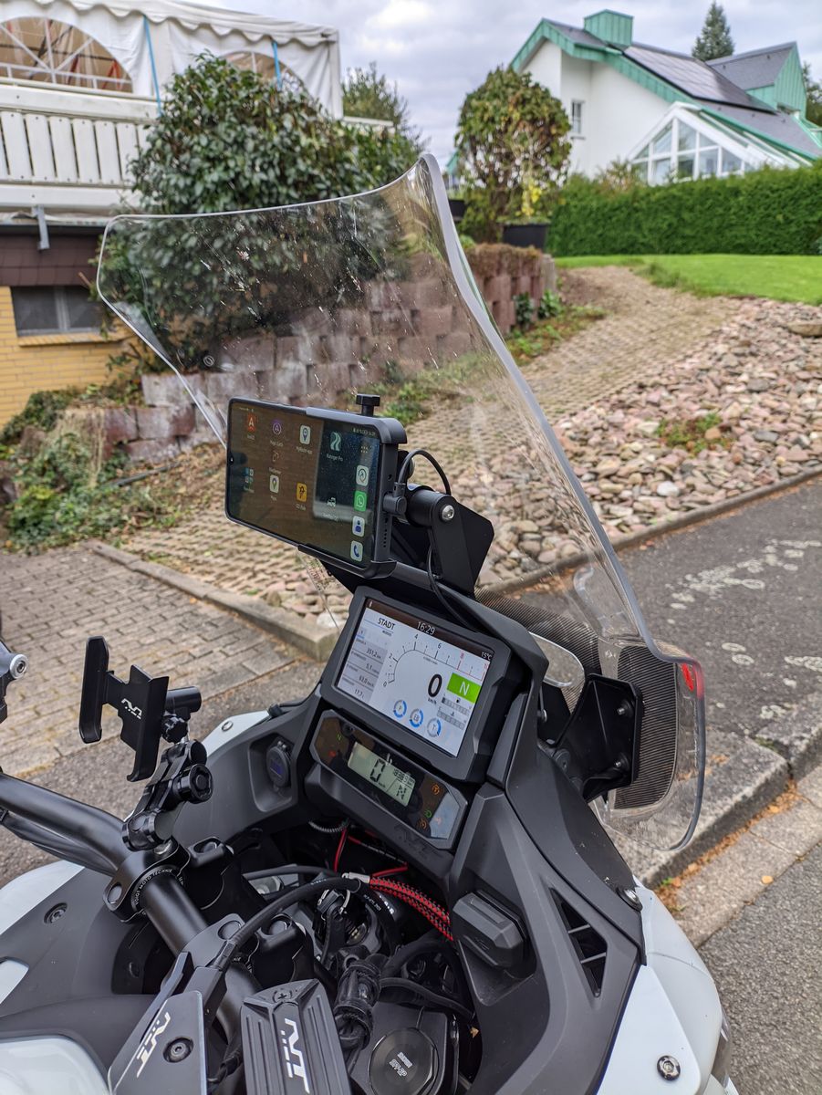 Der Halter wird aber hinter der Scheibe verschraubt und liegt dort auf der Verkleidung auf, wo sie stabil ist. Insofern habe ich Hoffnung, dass der Geschichte funktioniert.
