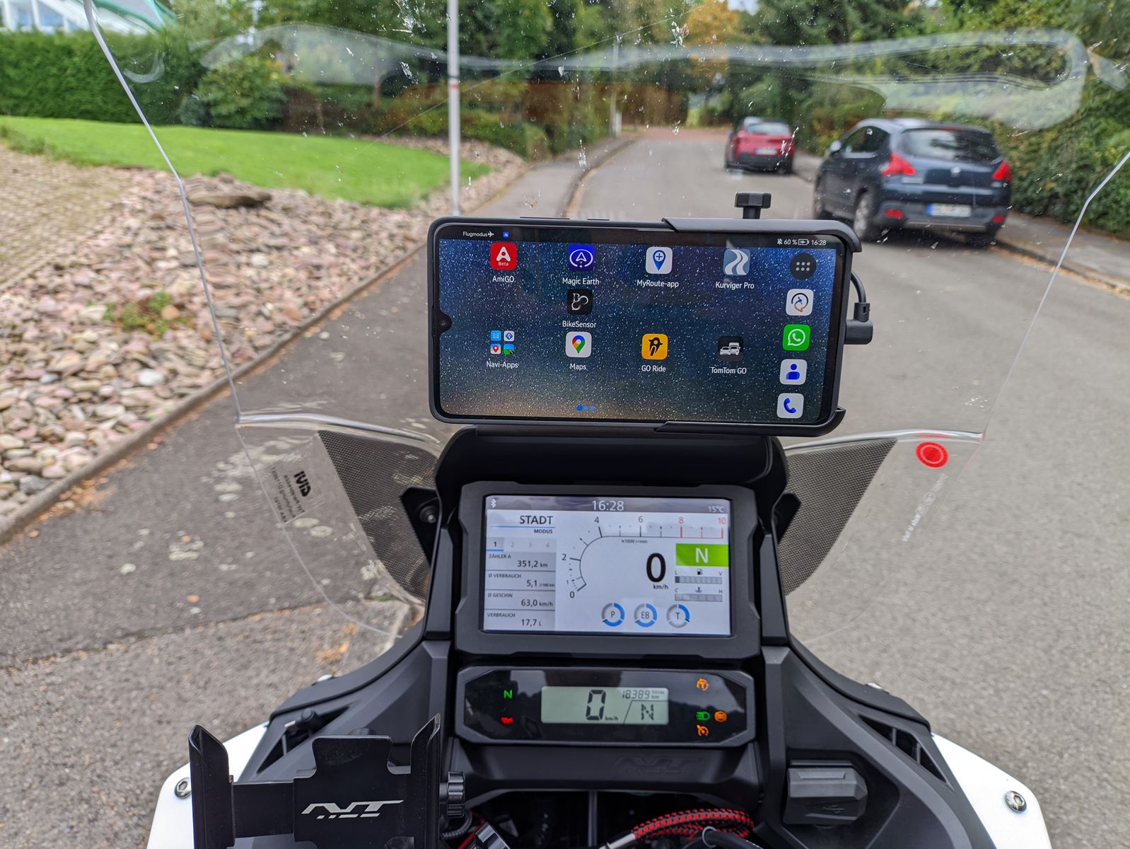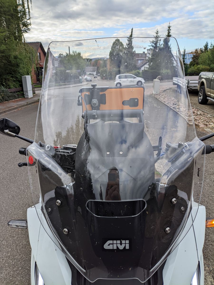 Der Halter wird aber hinter der Scheibe verschraubt und liegt dort auf der Verkleidung auf, wo sie stabil ist. Insofern habe ich Hoffnung, dass der Geschichte funktioniert.