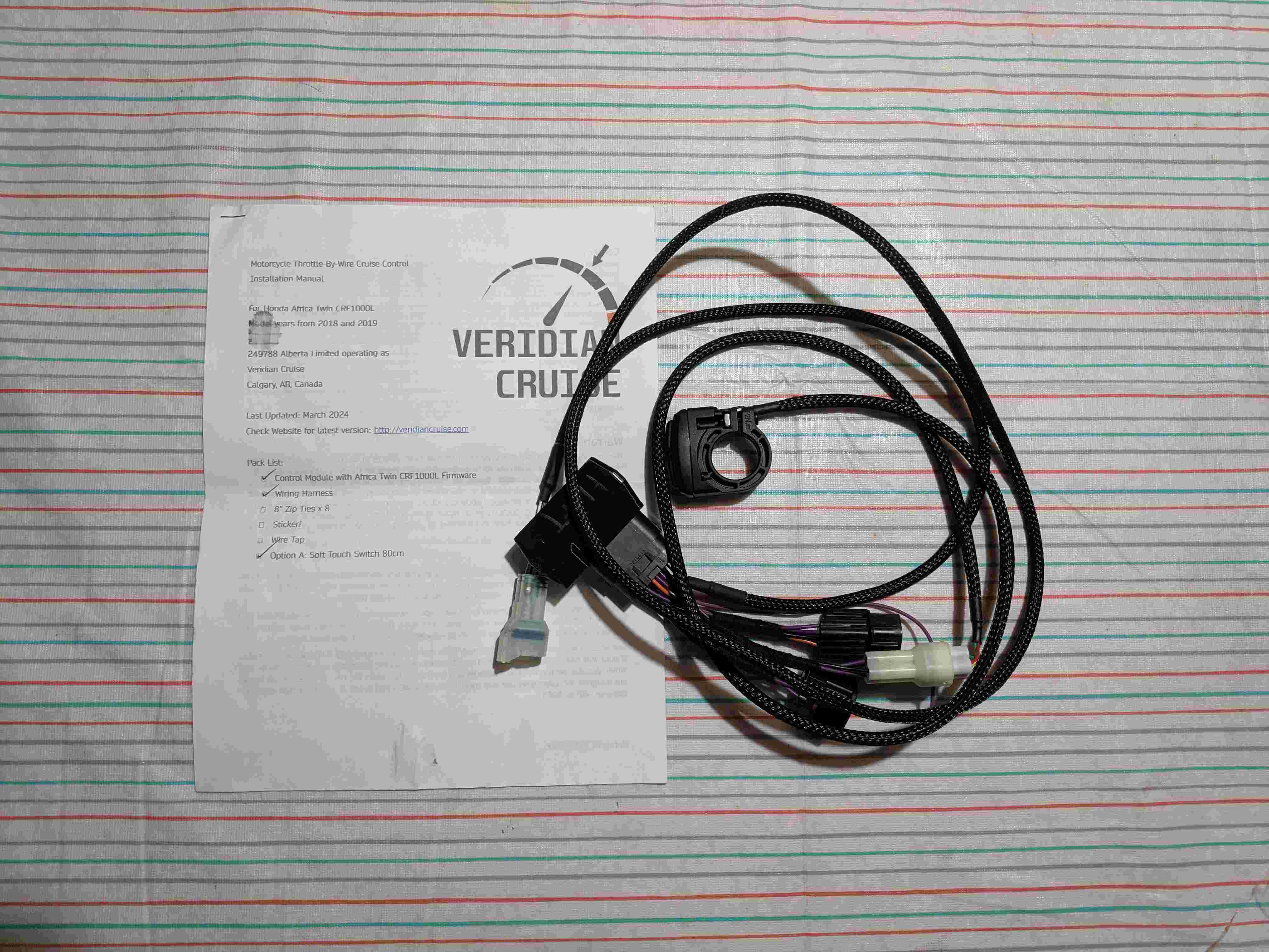 Jetzt im Juli habe ich nochmal ein bisschen rumgesurft und bin auf die Kanadische Firma Veridian Cruise gestoßen, die seit kurzem einen Tempomaten für die 18/19er Modelle anbieten und zwar für unschlagbare 300$. Nach kurzer Recherche war klar, das Ding muss ich haben und direkt bestellt. Mitte August kam das Teil dann (für Anfang September war eine größere Tour geplant, bin noch unterwegs, nach einer Woche Italien sind wir mit der Fähre von Ancona nach Split rüber und sitzen grad in nem Apartment die 2 Regentage hier ab :D)