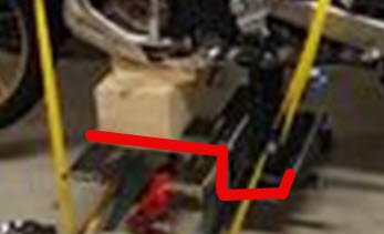 Detail aus dem Foto oben: Das ist der Hauptständer Adapter, da stellt man den Hauptständer rein, dann kommt der eigentliche Hubwagen drunter und die Kanthölzer und rauf geht es!