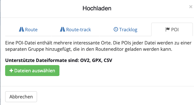 Anbei habe ich dir mal per Screenshot angemerkt was du alles in die myrouteapp IMPORTIEREN kannst, ich hoffe das klappt mit den Bildern.