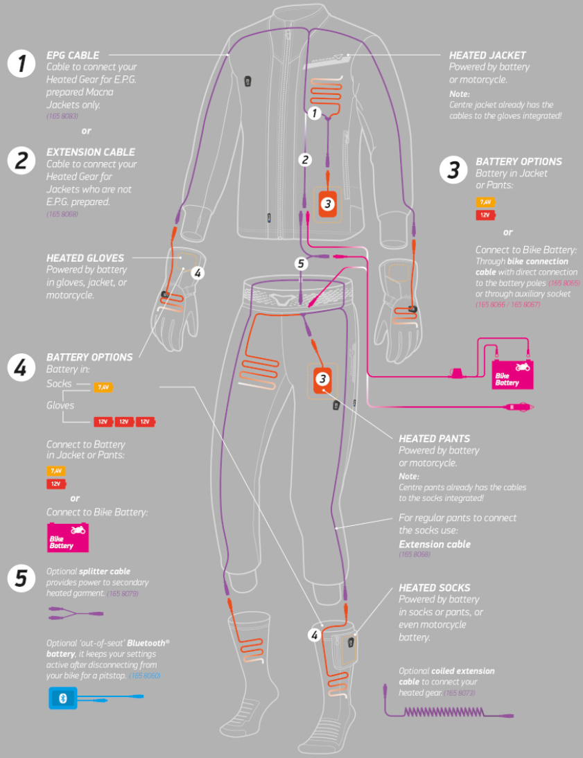 Ich habe das komplette Heizklamotten-Paket von Macna, inkl. Socken.