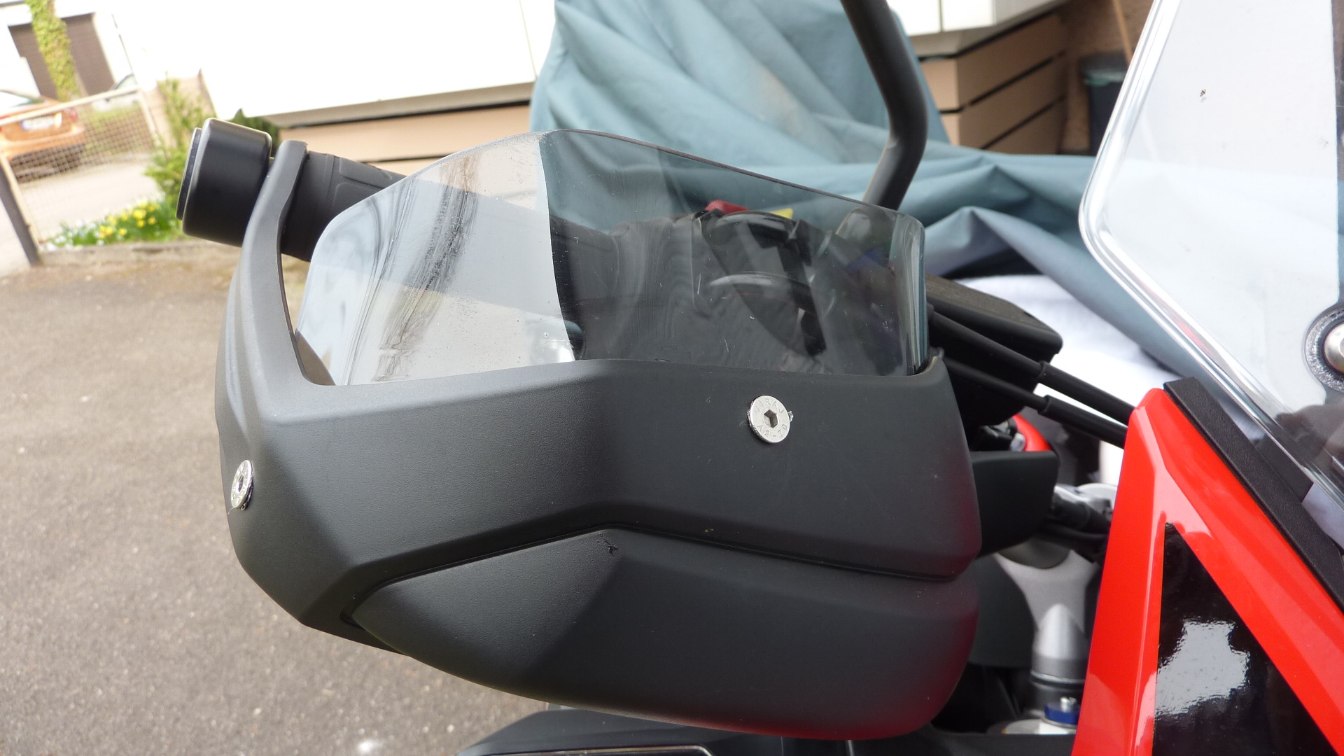 Muß sagen, der TR ist wie gemacht für die Twin. Es ist der volle Lenkeinschlag möglich, nur am Ende auf dem letzten Zentimeter gibts Widerstand. Die Schlalter auf den Lenkerarmaturen werden nicht gedrückt. Wenn man den TR weiter nach vorne rückt, kann sich das alles natürlich ändern. Ich hab genügend Platz, bin ein schlankes Kerlchen