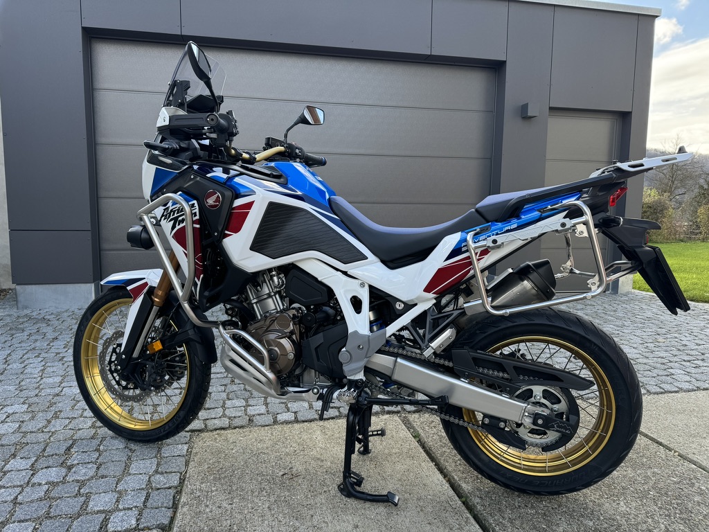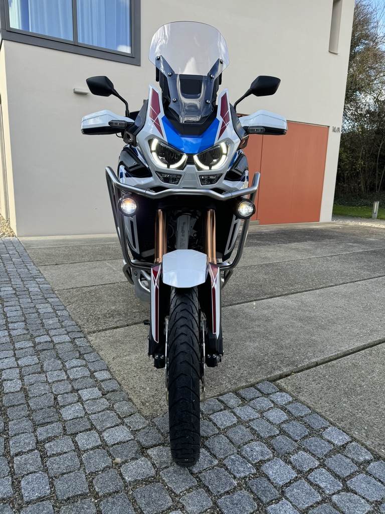 Verkaufe meine Honda Africa Twin Adventure Sports MJ 2023. Eine der letzten mit 21" Vorderrad, großen Federwegen und besserer Schräglagenfreiheit. Zustand wie neu, kein Gelände, kein Unfall, keine Kratzer.