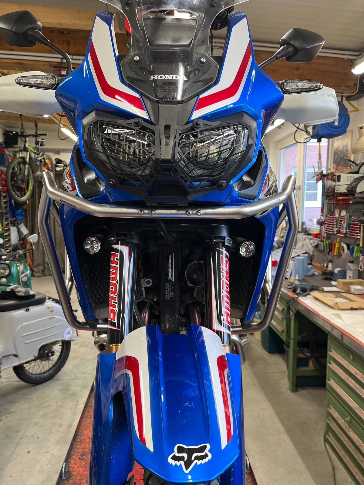 Würde die Scheinwerfer gerne mit den Halterungen direkt an der Gabel verbauen.