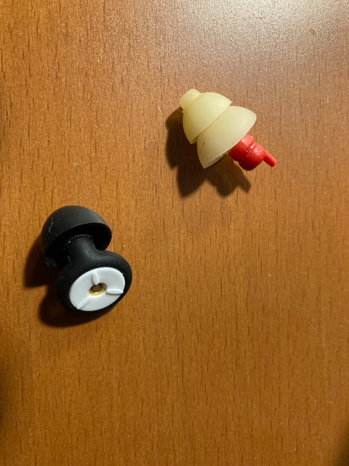 Ich hatte meinen superlauten Helm auf (Caberg Sintesi), und mit den großen Windschützern an den Handgriffen macht meine AT noch mehr Windgeräusche. Davon haben diese Dinger einiges weggedämmt. Sie dämmen - so mein Eindruck - mindestens so gut wie die bekannten Alpine Motosafe-Stöpsel mit dem roten Filter. Hier mal ein Vergleichsfoto: