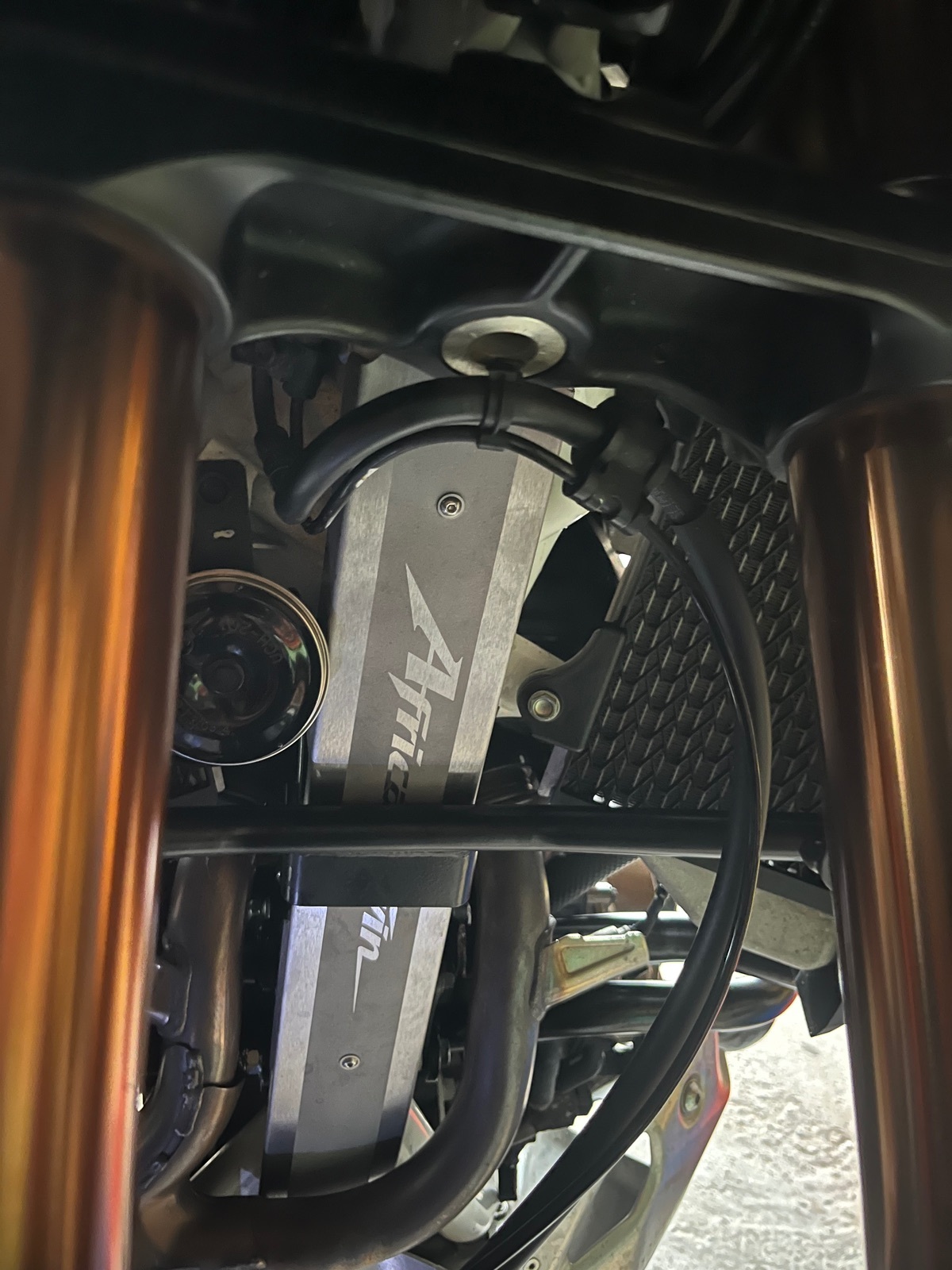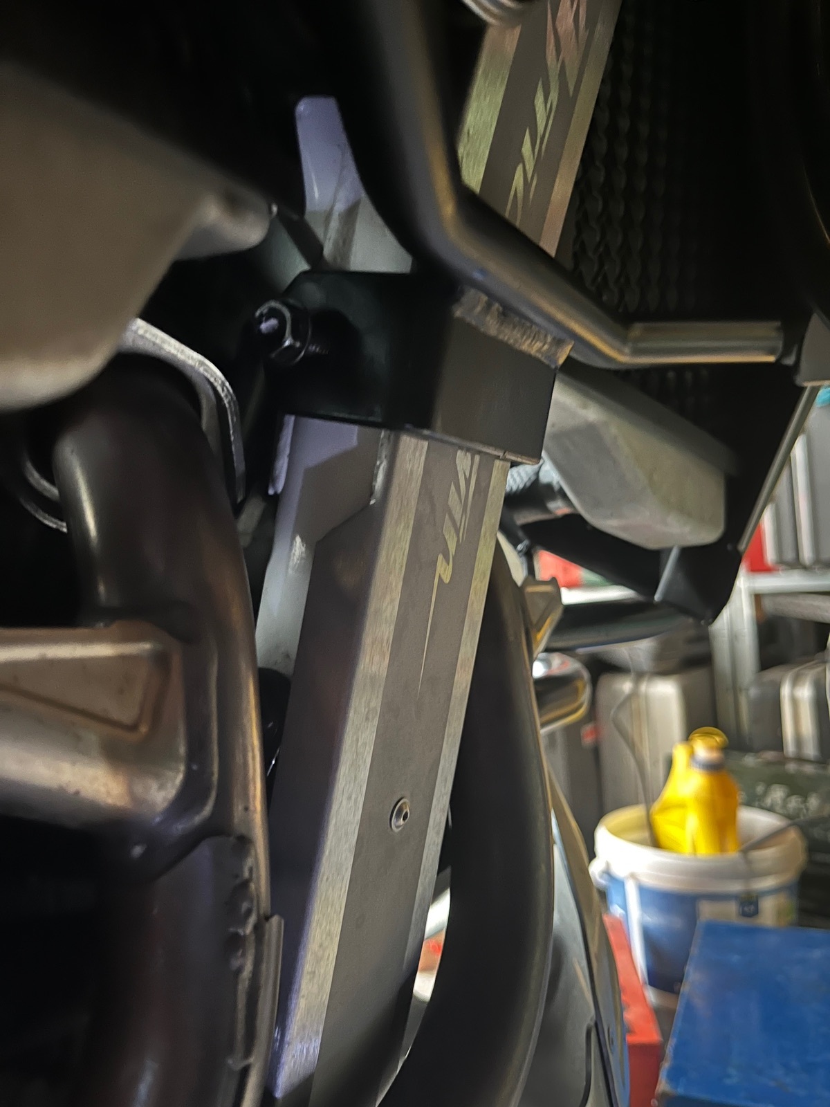 Heute den Rahmenschutz eingebaut. Vielleicht ist das für den einen oder anderen von Interesse. Ich habe den Sturzbügel von H u B mit der Querstrebe, die am Rahmen befestigt ist. Somit ist die Befestigung der Querstrebe am Rahmen dem neuen Rahmenschutzblech im Weg. Nach meiner Kenntnis hat z.B. @VerenAT21 das gleiche Problem. (Grüße von hier aus)