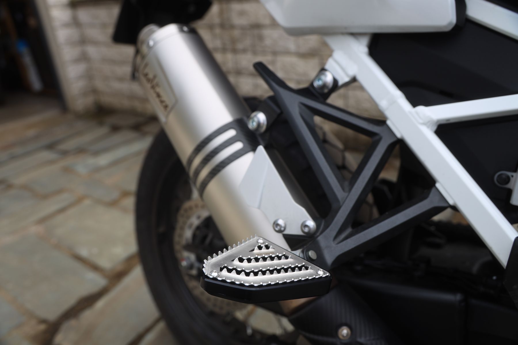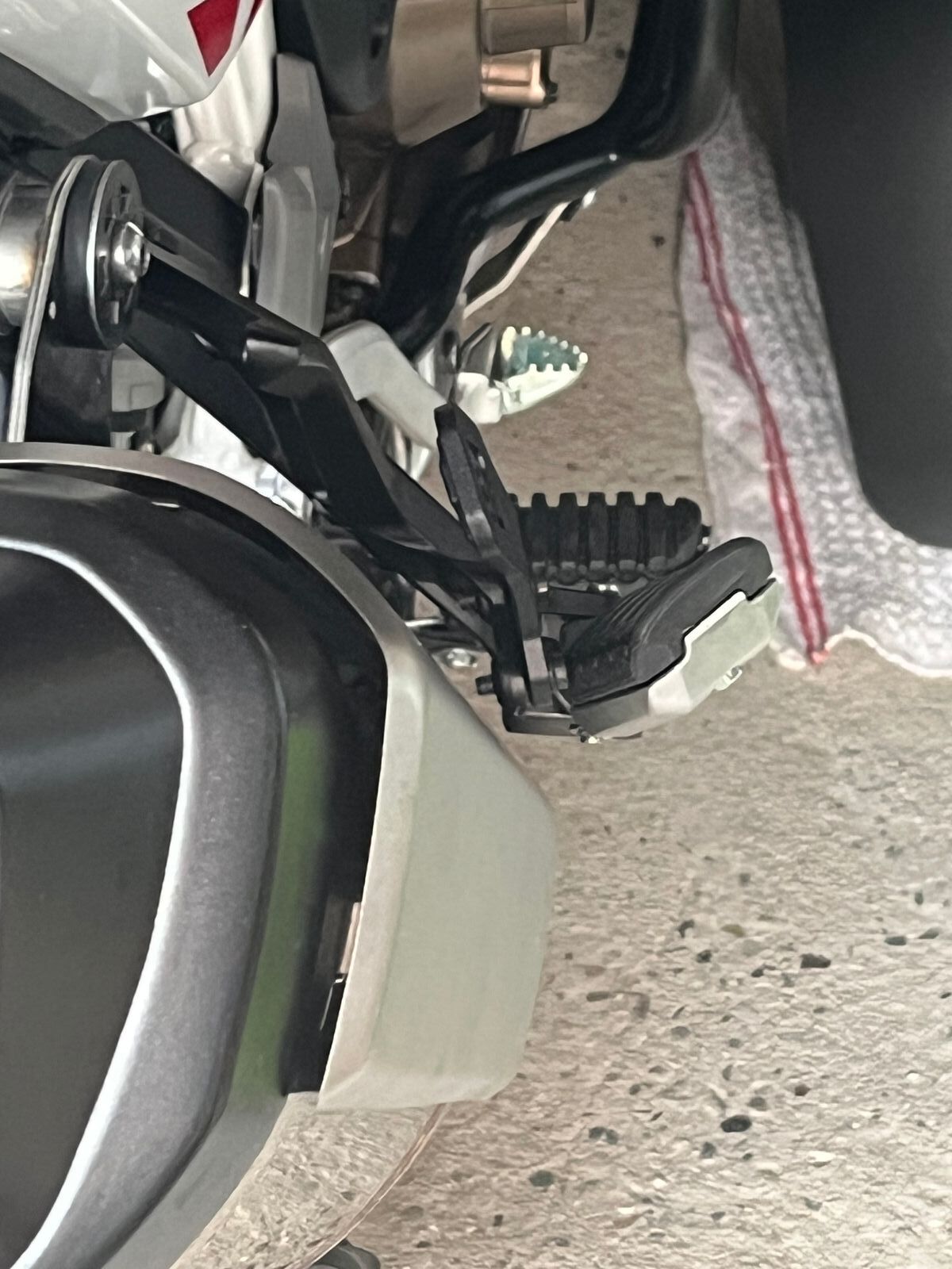 Das Ausschneiden stört überhaupt nicht auf der Fußraste und ist auch nicht zu sehen.