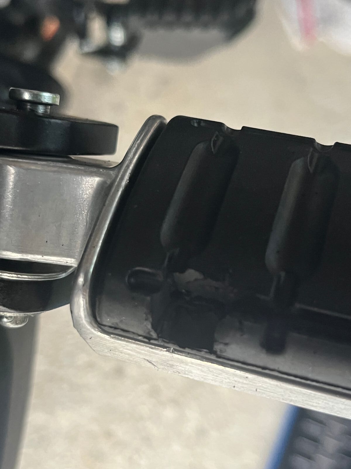 Wenn man mit einer feinen Klinge genau die Stelle der Halteschraube passend ausschneidet klappt die Fußraste wieder sicher ein.