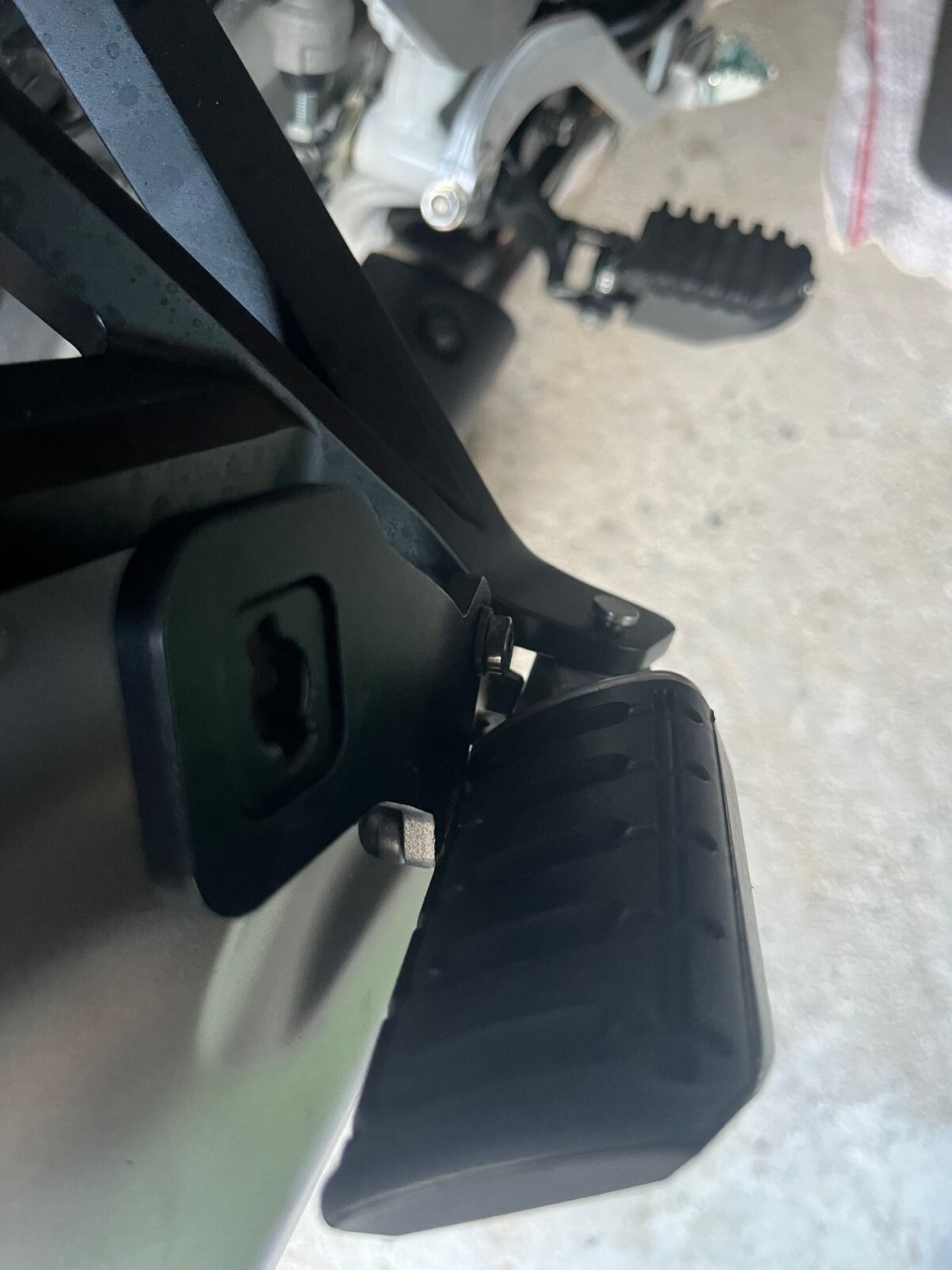 Durch den Halter vom Pro Seitenträger kommt die Kugel jedoch nicht in diese Position und dann steht die Fußraste schräg ohne Sicherung.