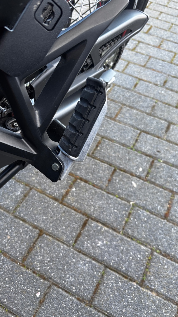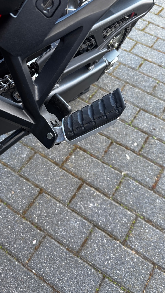 ich habe an meiner Dicken Gummi Sozius Fußrasten nachgerüstet, weil meine Kleine auf den Serienfußrasten immer abgerutscht ist.