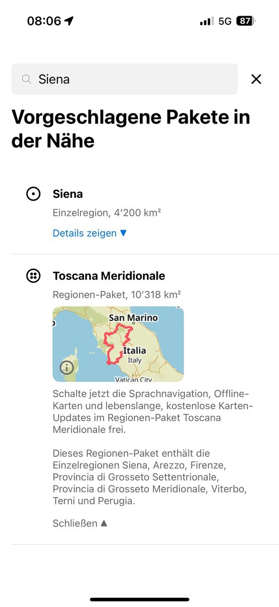 Wie sehen die offline Karten aus, ganze Länder wie bei kurviger oder einzelne Bereiche wie bei komoot?