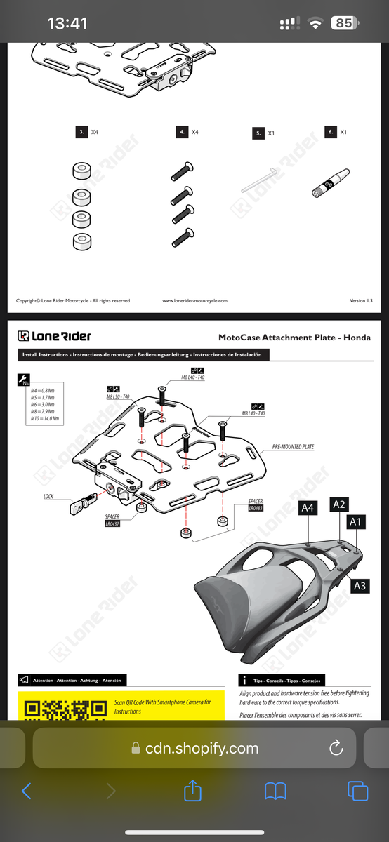 Ich habe mir damals im Angebot das Topcase von Lone Rider gekauft. jetzt ist es so, dass vier Schrauben beiliegen und vier Abstandshalter, aber keine Kontermuttern. In der Anleitung sehe ich, dass die Schrauben einfach in die vorhandene Gepäckträger Halterung der Africa Twin Englschalk Trooh bt werden sollen. Diese hat aber kein Gewinde. Laut Teile Liste ist alles komplett. Kann es sein, dass sich am Gepäckträger der Africa Touren etwas geändert hat zwischen den Modellen 2024 und 2025? Was übersehe ich?