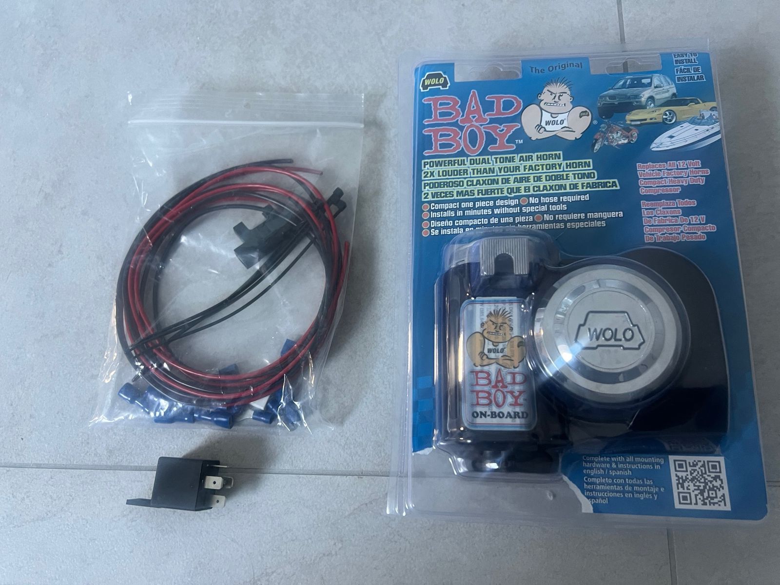 inklusive Installationsmaterial - Kabelsatz (kostet bei Louis 12,90 Euro extra) - Sicherungshalter - Relais und Montageanleitung.