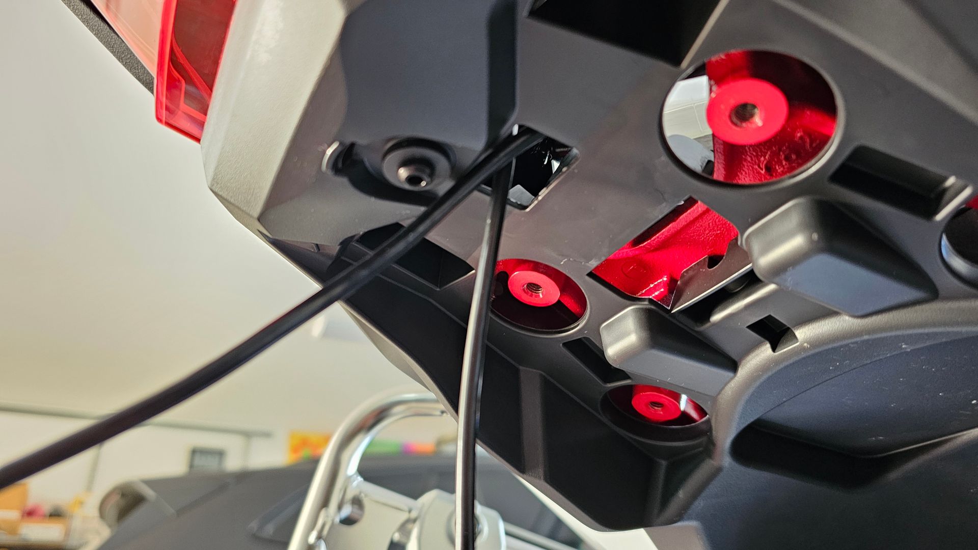 Zum Thema der Kabeldurchführung ein Bild wo ich die Kabel durchgeführt habe. Dort werden auch die Kabel für Blinker und Nummernschildbeleuchtung durchgeführt.