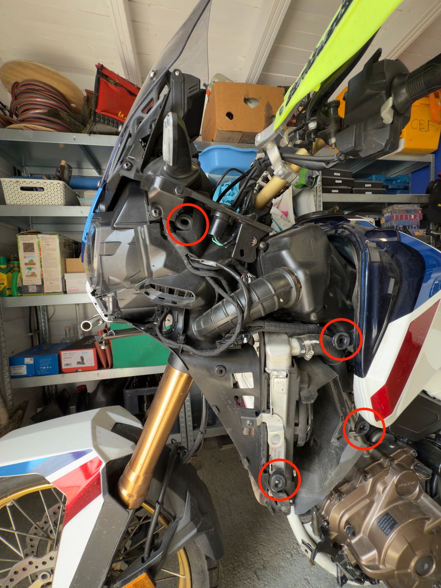 Ich habe das jetzt schon ein paar mal gemacht. Das zweite Video von Mr. Gatekeeper beschreibt es sehr gut. Bei den originalen Sturzbügel reicht es die Verbindung vorne-mittig zu trennen, dann kann der Bügel nach vorne geklappt werden und man hat genug Platz. Ich finde den anschließenden Wiedereinbau mühsamer, ich hab es noch nicht geschafft, dass die Verkleidung beim ersten Versuch wieder schön an ihrem vorgesehenen Platz einrastet - aber mit etwas Geduld auch kein Problem. Beim Herausziehen der Verkleidung wirklich darauf achten, dass man horizontal zieht (hab sie dabei immer auf dem Hauptständer stehen) und die Zugkraft bezogen auf die Stifte nicht in eine andere Richtung wirkt. Die Zugkraft leicht steigern und ja nicht anreißen, dann rutschen die Stifte gut aus der Gummihalterung raus. Danach durch ganz sachtes Hin-und Herbewegen die Verkleidung vorne beim Scheinwerfer ablösen, keine ruckartigen Bewegungen machen. Geduld!