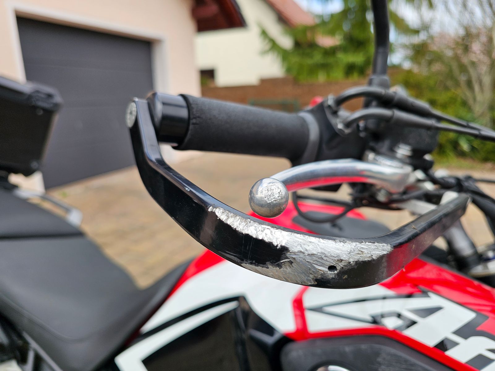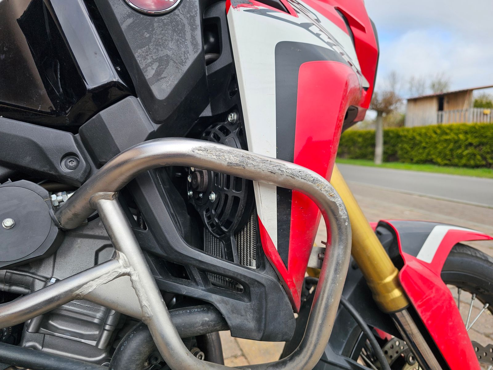 Ich fahre eine 2017er DCT CRF1000L und bin gestern am Ende einer Feierabendrunde auf Rollsplit weg gerutscht. Klamotten haben ihre Schuld getan, sind aber jetzt im Eimer und ein paar Teile am Mopped haben natürlich auch gelitten. Mir geht's bis auf 2 kleine Schürfwunden und vermutlich ein paar blaue Flecken gut.