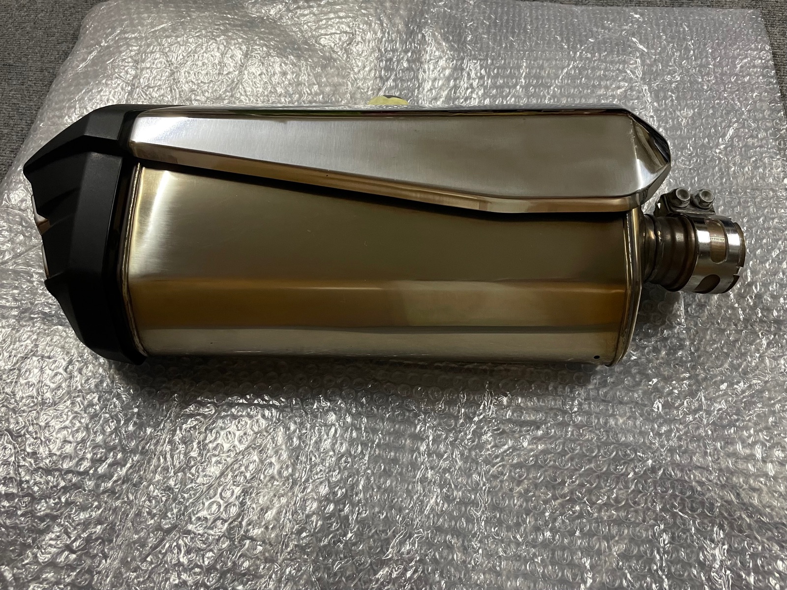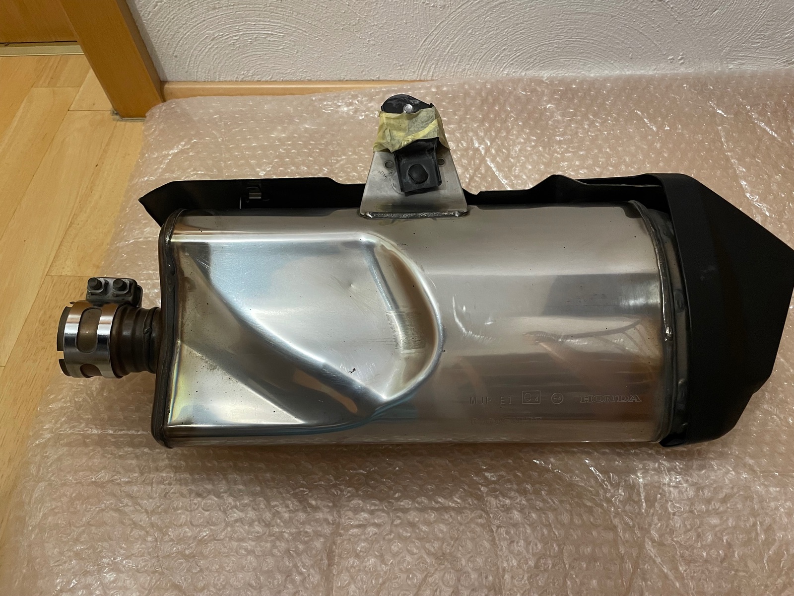 Biete hier einen gebrauchten Endschalldämpfer für eine CRF1000 an. Bei dem Auspuff handelt es sich um die „leisere“ Variante, erkennbar an den eckigen Auspuffendrohren. Dieser wurde bis 2017 an den CRF1000 Modellen werkseitig ausgeliefert.