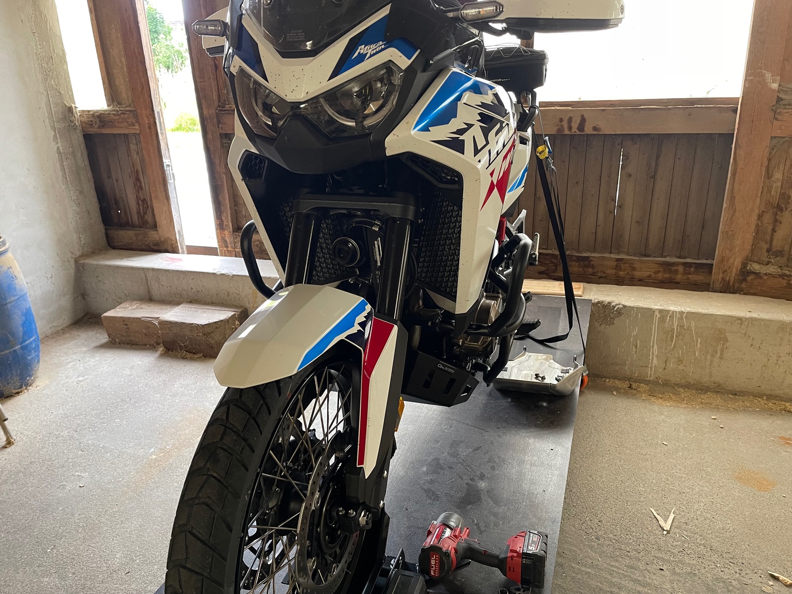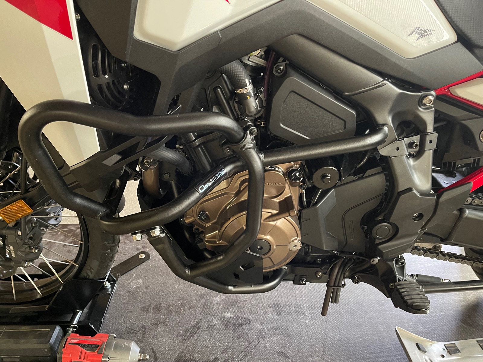 Anfangs passte der Motor Schutz aber mit dem Hauptständer nicht und er war im Liefer Verzug.