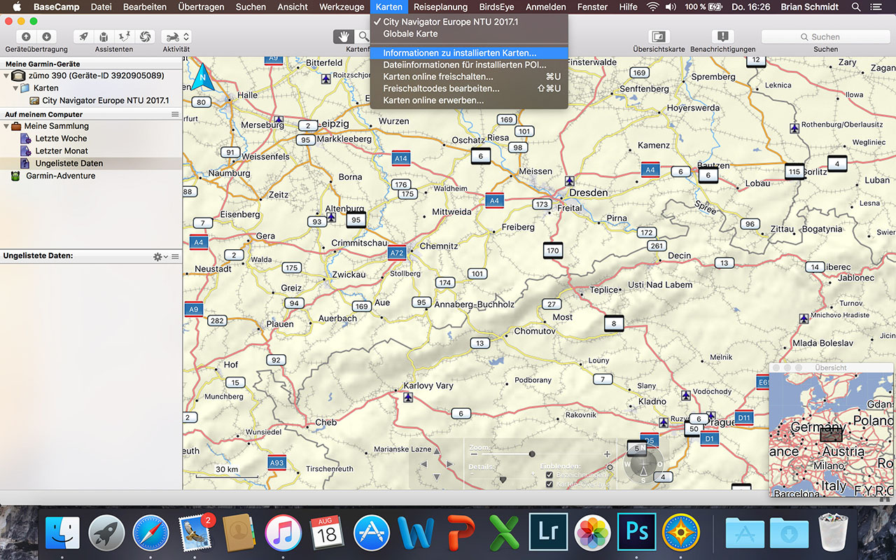 bei Garmin registriertes Nüvi 1490 mit aktueller Karte 2017.10 angeschlossen ...