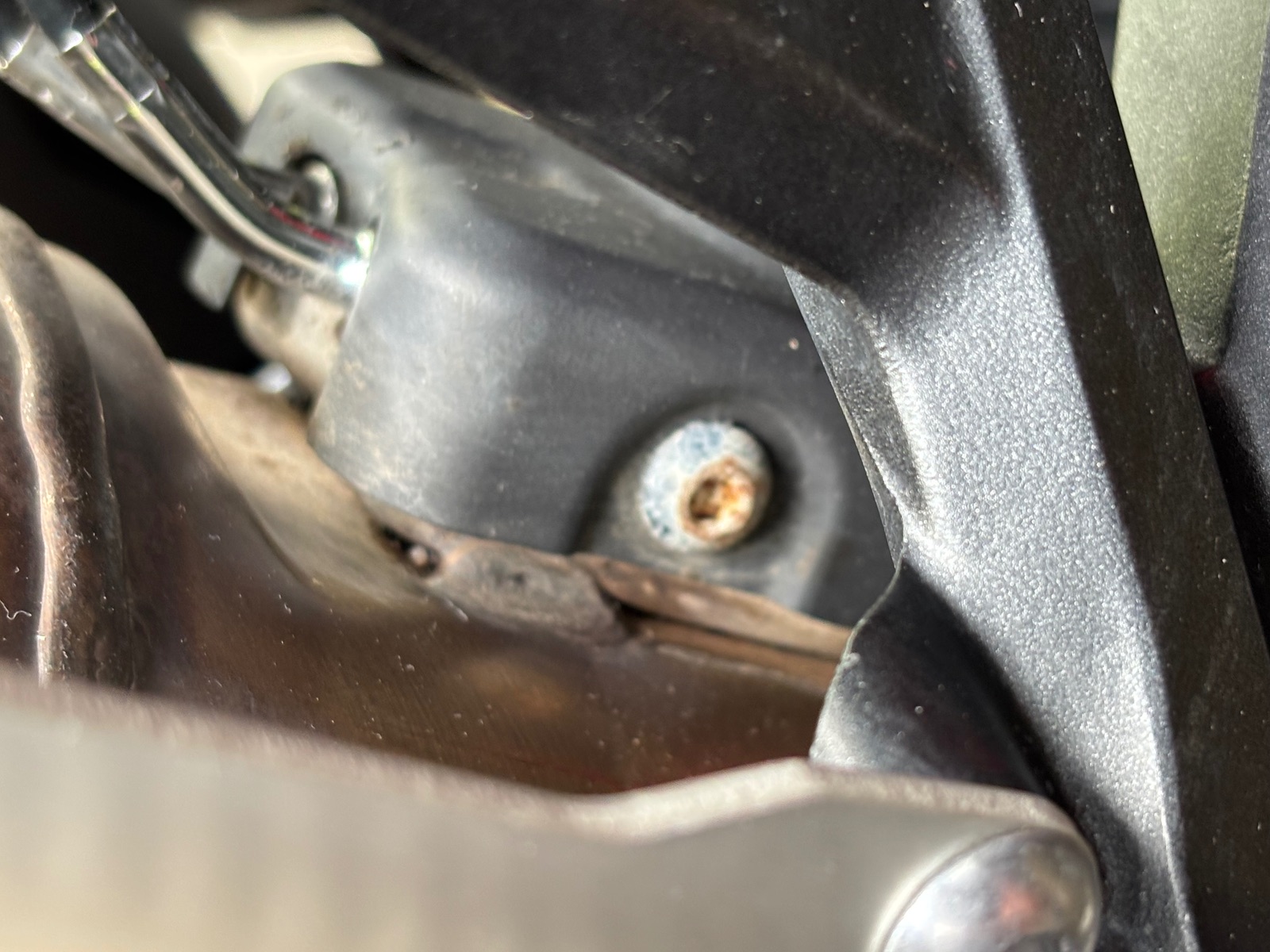 Meine vorne rechts an der Auspuffabdeckung (NT1100) waren beim rausdrehen sofort im Imbuss abgedreht, müssen nun rausgebohrt werden, oben unter dem Fahrersitz sind zwei Imbuss auch sofort abgedreht gewesen (die halten dort die weissen kurze Seitenverkleidung). Auch diese musste ich ausbohren. Entweder die waren vom Werk aus zu fest oder die Schraubenqualität ist nicht gut. Am Auspuff wird es halt aufwändig, der ist mit 4 Schrauben dieser Art befestigt, daher muss er für die zwei innenliegenden Imbusse auch komplett entfernt werden.