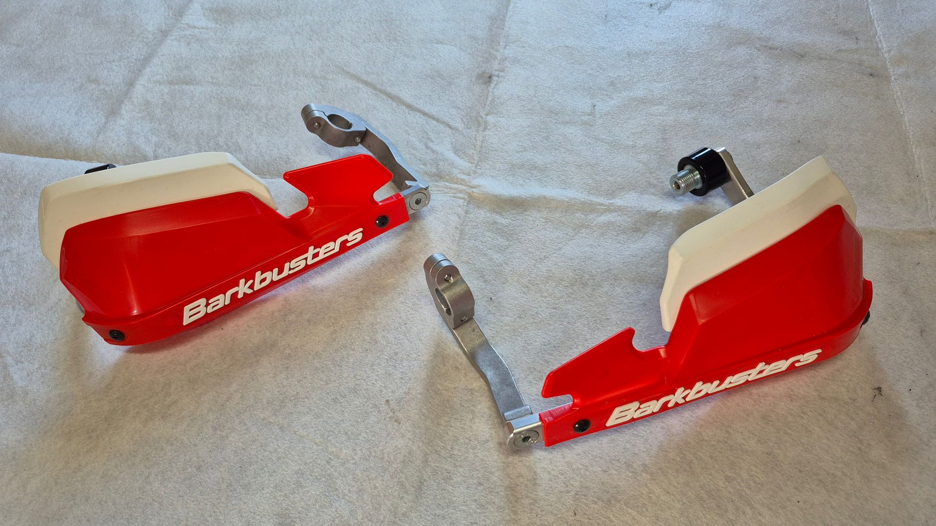 4. Barkbusters Handguards. Schale in Grundfarbe rot mit weißen Erweiterungen - 95,- Verkauft!