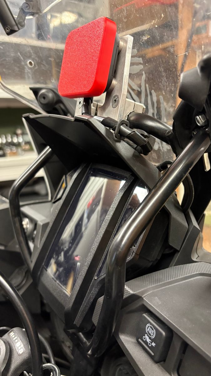 du hattest mich nach der Strebe gefragt wo ich mein Zumo XT dran befestigt habe. Das Teil nennt sich GPS Anbauadapter zur Montage über den Instrumenten. Käuflich zu erwerben für eine CRF 1000 Adventure Sports bei Touratech unter folgendem Link: