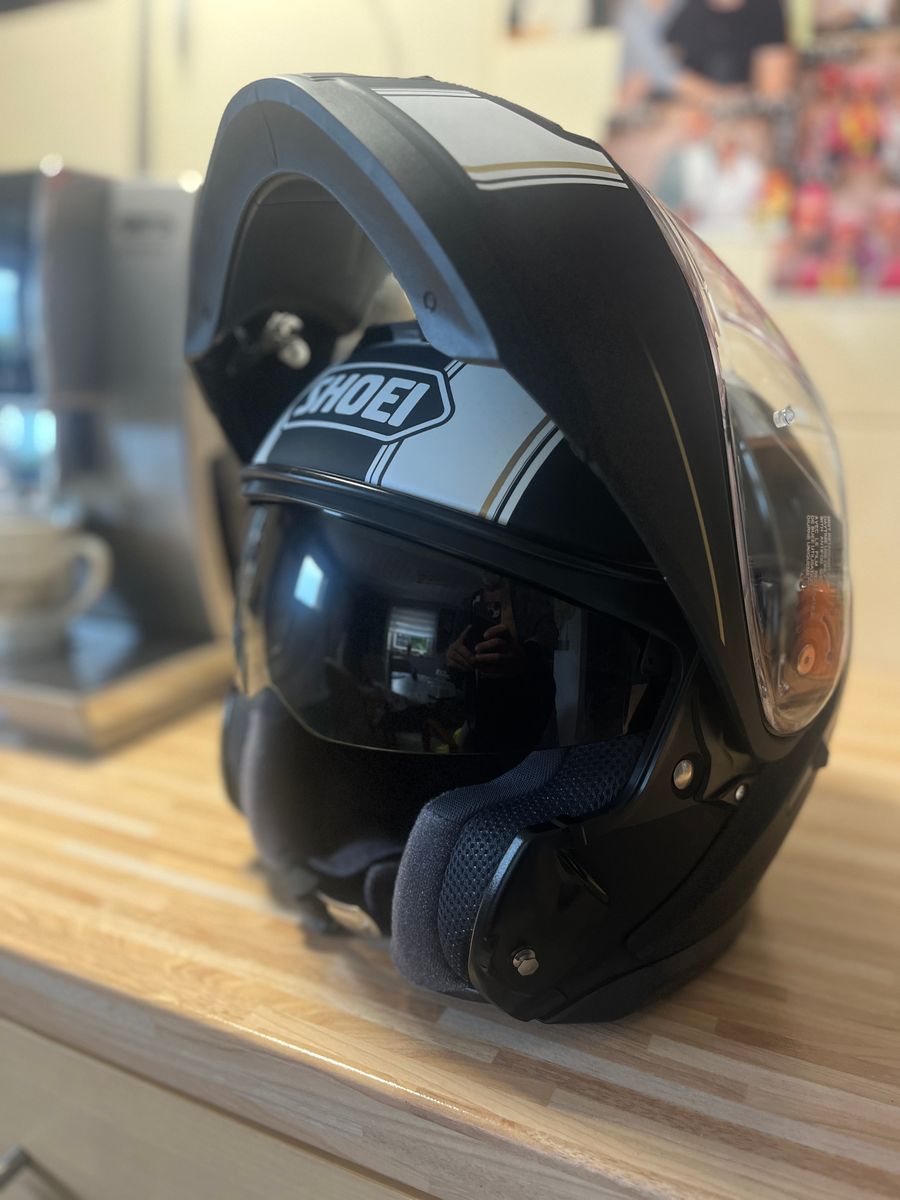Da mir die Passform, bzw. das Tragegefühl des Schubert C5 nicht gefallen hat, bin ich wie halt seit Jahrzehnten wieder bei Shoei gelandet. Da der Satori-5 nicht in meiner Größe da war, hat Louis ihn mir diese Woche geliefert.