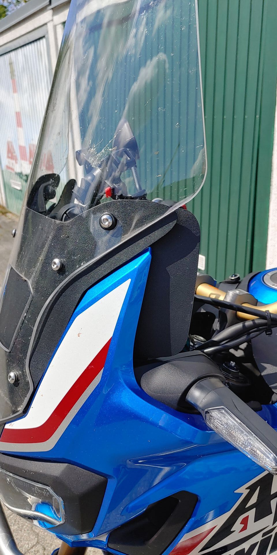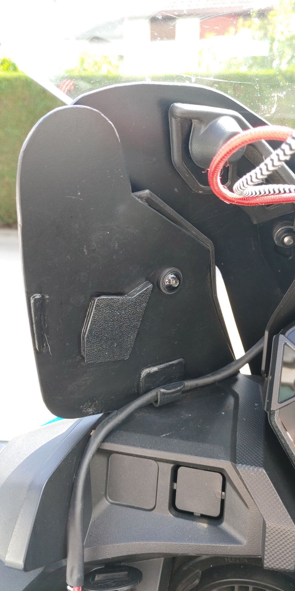 biete einen DIY Verwirbelungsschutz für die SD06 an, passt bei dem niedrigen oder hohen Windschild. Auf der linken Seite ist eine Halterung für das SENA 20 EVO zum Laden integriert, auf der rechten Seite kann ein Reifendrucksystem montiert werden ( siehe Bilder). Es werden ausschlieslich orginal Montagepunkte der Verkleidung und des Windschilds verwendet. Längere Schrauben liegen bei
