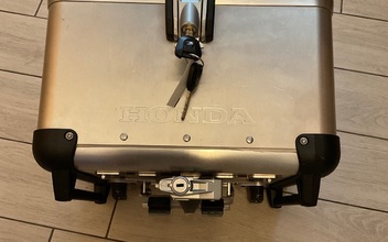 Über Kleinanzeigen habe ich jetzt ein schönes TC von Touratech mit Honda-Label erstanden. Wegen Regens habe ich das Teil mit dem Auto abgeholt. War vorher auch anner AT dran. Mit Halteplatte 200 Euronen - eigentlich zu teuer aber ich hatte auch keinen Bock mehr.