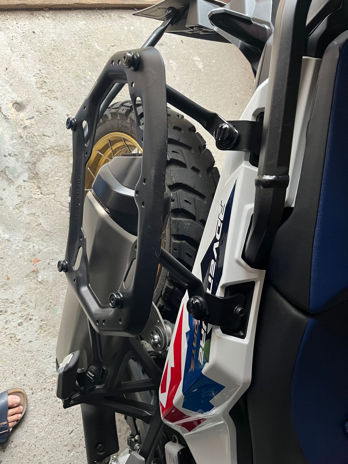 Was mich an den MoskoMoto System gestört hat, war die vielen Gurte und das Einrollen der Gepäcköffnung. Ich wollte auch keinen Gepäckträger montieren. Koffer sind da halt wesentlich praktischer. Aber meine Frau hatte auch einen Umfaller und es war halt gar nichts kaputt. Die Gefahr den Fuß im Off Road einzuklemmen ist auch niedriger. Das System ist Modular aufgebaut und kann erweitert werden. Es git zig Möglichkeiten es individuell anzupassen. Meine Das letzte Bild war letztes Jahr als wir auf das Maxlride gefahren sind. Wir hatten wirklich alles dabei. Zelt, Zwei Stühle, Tisch und die komplette Campingausstattung.