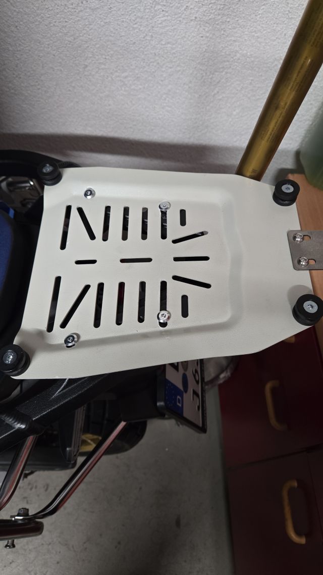 Wenn der Topcase montiert ist kein Problem. Wenn man ihn abnimmt sieht man es halt deutlich den Haken rechts (fehlt auf dem Bild leider etwas).